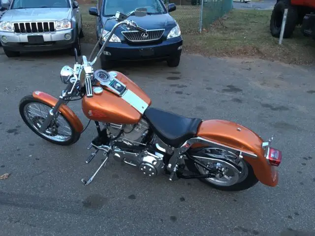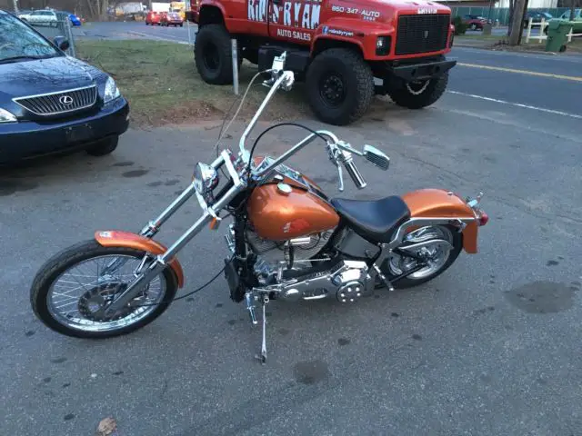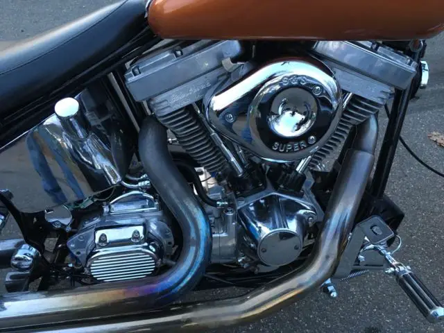 Custom softail evo chopper, onster 120 inch Delkron engine with Edlebrock heads, ltima 5 speed transmission, ew battery, resh oil change, his bike is extremely fast! It runs and rides awesome! I have all the paperwork for all the parts that went into this build (see pictures). Tons of money went into this build. Summer is coming, his bike is ready to ride and enjoy!