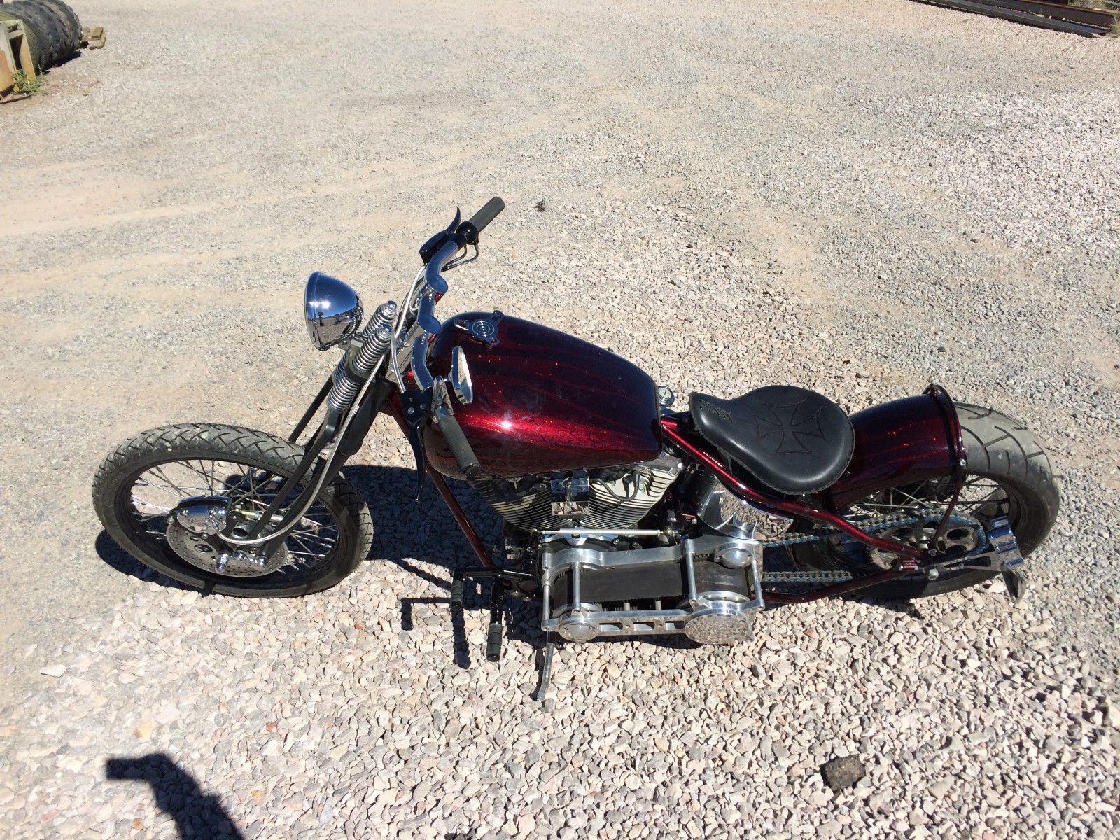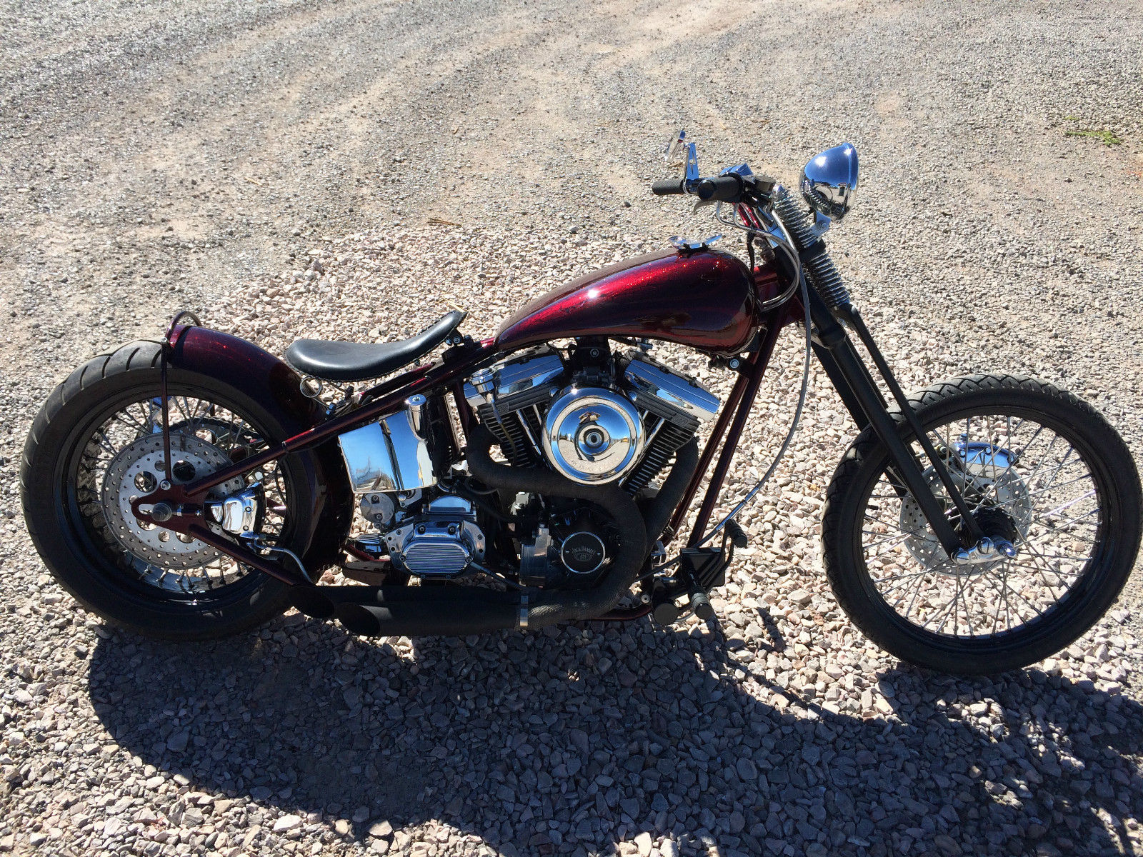 New Construction Custom Bobber. Frame is a 2005 Chopper Guys FGRE model. Never titled sold with MSO. Motor is a 1998 Harley Evo with a 90" S&S Hot Setup Stroker kit. assembled by a certified motorcycle mechanic. S&S HVHP oil pump. Bill of sale on MotorMikuni carb. stainless braided lines. custom exhaust. 5 Speed Transmission in STD cases. 3" open Primary. Chain drive 200 rear tire Bike only has tail/brake light. hi/low beam headlight and horn. But has solid state electronics and wiring for turn signals and starter switch. Currently setup to start with starter plunge button. Will assist with shipping arrangements. Everything on this bike is new or has been rebuilt by a certified motorcycle mechanic. Harley. bobber. chopper. prostreet. pro street. hard tail