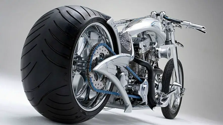 Rear. 18" Xtreme with pinstriping. Avon 300/35VRx18. and Exile chain sprocket brake