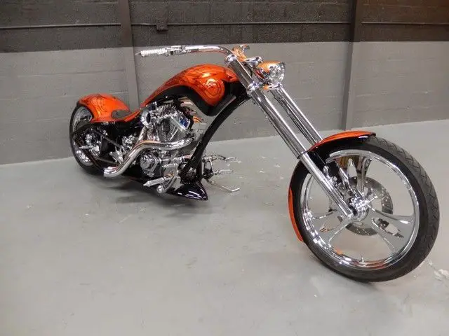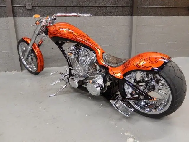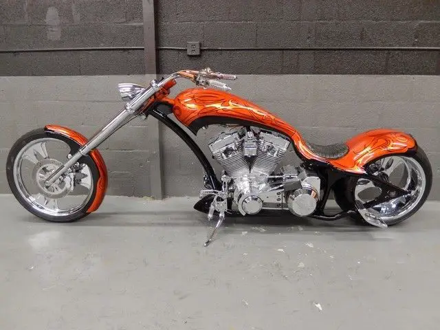 YOU WANT THE "BADDEST CAT IN THE JUNGLE". YOU WANT A CROWD OF PEOPLE EVERYWHERE YOU GO. IF NOT . DONT BUY THIS BIKE BECAUSE SHE SCREAMS ATTENTION : THIS IS NOT ONLY A MOTORCYCLE IT IS A WORK OF ART. 2008 THUNDER CYCLES DROP SEAT RIGID 124" FULLY POLISHED MOTOR. 6 SPEED TRANSMISSION. 300MM REAR TIEW. CANDY ORANGE OVER 24K GOLD LEAF BIKE IS ABSOUTELY STUNNING AND A PERFECTLY BALANCED RIDING AND HANDLING. THIS BIKE WAS NORTH OF 60K WHEN NEW THIS IS A SUPER DEAL DON'T PASS IT UP. PLEASE. NLY LOCAL AND SERIOUS INQUIRIES AND I MAY CLOSE THE ACTION EARLY IF MY PRICE WILL BE TOUCHED. REGARDING THE SHIPPING FEES PLEASE DO NOT FORGET PROVIDE ME YOUR ZIPPCODE