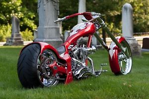 We are the the mid-wests number one custom bike shop and we build the baddest custom choppers in the country. We are a federal licensed manufacturer and issue titles with our bikes. Like these bikes pictured. they are examples of our popular base model chassis from entry level to all out radical. Starting at 40k. These bikes are 8-10 ft long depending on rakes and stretch and start with a made for (b. t. c. s. ) exclusive one off chassis. this chassis is available in any rake or stretch and any combination of down tubes and backbones. 3. 5in. drop seat. +2 in. stretch swingarm in 3- different styles. inverted or telescoping front ends with 5 degree trees and integrated caliper with hidden line. 21' x3. 5 front and 18 x 10 rear renegade. olorado or pickard chrome wheels standard with metal sport 3-d chrome one off wheels (optional) matching sprocket/rotor with 120mm front and 300mm rear avon cobra tires standard. Custom cycle control systems polished air ride suspension standard. Your choice of any of our base model gas tanks standard. Custom 1-0ff metal fab work on tank. fenders. gussets. bars. seat pocket and motor mount standard. Your choice of chin spoilers (optional). Custom led turn signals frenched into the rear of swing arm (optional). Custom handmade handle bars with (b. t. c. s. ) one off grips. spacers and streamline internal throttle standard. no hand controls (optional). frenched into handlebars 2'in. wire plus digital speedo (optional). Billet H. H. I. forward and hand controls with matching Billet pegs standard. S. M. W. 120/127 inch 130/140 hp. show polished evo or pan head motor standard or upgrade to R&R billet 131-155 engines (optional). your choice of air cleaner standard. 1-off 2-2 or 2-1 exhaust standard. Baker rsd trans with b. t. c. s. tranz brake optional. A Tech cycle 3 inch open belt drive with intergrated oil filter exclusive to b. t. c. s. (optional). Angel Sandoval of Extreme Kustom Paint Works lays the mud and sprays the colors with his signature graphix/pinstriping covering every inch. A Jeff phipps custom hand laced exotic seat finishes it off. These bikes also have our special hidden wire and hyd. line option in the head tube and thruout the entire bike. oil lines are braided with matching fittings. Finishing it up with a headwinds style headlite and tech cycle taillite/plate bracket. (We take pride that our bikes use 100% made in america parts) no chinese or korean junk. Hundreds of hours have gone into this bike to make it a truely beautiful. flawless and ridable work of art. As an added bonus to our customers. we are a federaly liscenced motorcycle manufacturer so all of our builds come with a manufacturers title. This means easy registration with your dmv and hassle free insurance coverage. Our bikes speak for themselves. I urge you to compare us to any other shop out there in quality. fit and finish. We take pride in providing a list of every part on our machines. either made by us or by our venders we guarantee all parts are manufactured here in the U. S. A. and that means quality. We refuse to lower our standards by using inferior parts made in korea/china. Cheaper does not always mean your getting a better deal. You get what you pay for these days. so be careful how you spend your hard earned money.