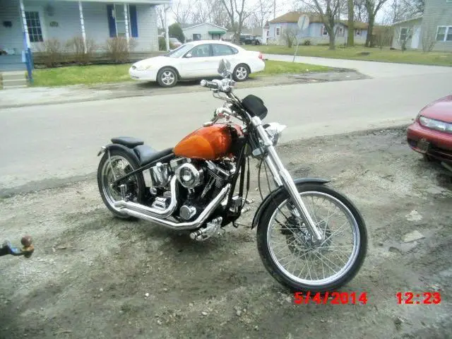 This is a custom built 113" S&S 'Ground Pounder' less than 3. 00 original miles! New tires front and rear. 6 gal tank custom orange paint (H-D Custom Factory Paint on Tank). La Pierra seat. 6 sp tran. . 80 rear tire. Extremely fast and producing over 95 foot pounds of torque at rear wheel and over 98. 5 hp at 6. 00 rpm. Dyno Tested with right at 1500 miles on engine. has gotten much stronger since dyno. Lots of extra chrome and all offset by jet black frame and fenders. Serious bidders only! No Low Ball Bids. not desperate. just ready to build a new one. Engine alone cost over $8. 00 dollars. so please do not try to wait until auction is close to over and call to ask if I will take less than minimum bid. I won't. This bike was built by one of the best Harley mechanics in the state of Indiana and is a beast. if speed scares you. this is not the bike for you!