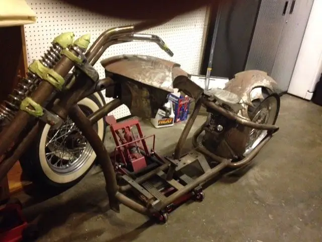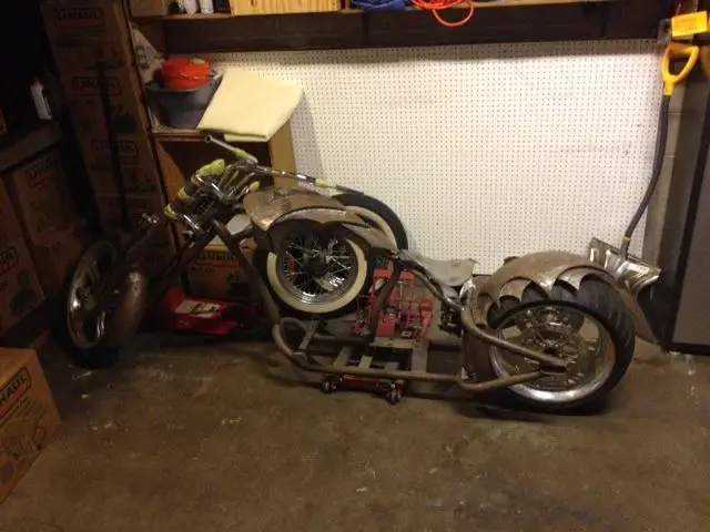 100% custom chopper:This is a one of frame made by Fred Kodlin - IMBBA "HALL OF FAME" from GERMANYhad this frame made while I was living in Holland. This was a very cool frame that I thought up (American) and put together by Fred. When I moved back home I keep working on the bike along with Phil Korte from Create A Custom Cycle in Tombstone AZ. Another great chopper builder. Elite Chrome Testament rims. matching rotors. and pulley. Paid $189518x5. 5 rim w/300 rear with Avon tire21x3. 25 front with avon tire72 tooth rear pully11. 5 inch matching front rotors and rear rotorcustom seat springoil tank is on lower rear fendercustom rear fenderwiring holes in from to hide wires. holes have been re-enforcedcustom battery mount. mounts under tranycustom fuel tankAmerican Suspension D-66 "dragon" springer front-end paid $1799custom handle barsBaker 5 speed trany right side drive ** lost MSO in move. HOWEVER I called baker and for $25. they will reprint it. I do have prof-of-purchase for the trany. Paid $2349. 99 I do have a mock up eng that I will throw in. It's what I used when I mocked up the tank. this has been a project of mine for some time. I have speared no expense on this bike and was in no rush so it has a lot of good work done to it. not no tweeker hack job. If you add up the prices of the parts i have mentioned with a price next to them you have a total of $6043. all you need to finish this is a eng or use the mock up one. a primary. hand and foot controls. pipes. and wire it. I also have listed a S&S 124 engine (ebay item #321629334731) If you like I can sell them together. Prices listed on each item for a total of $12. 00. 00