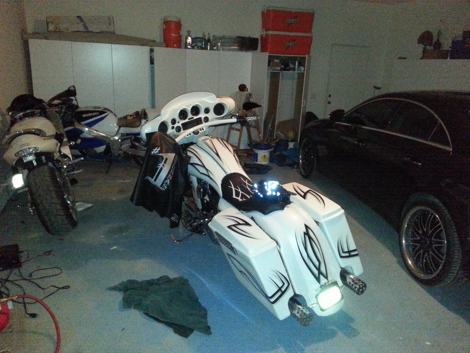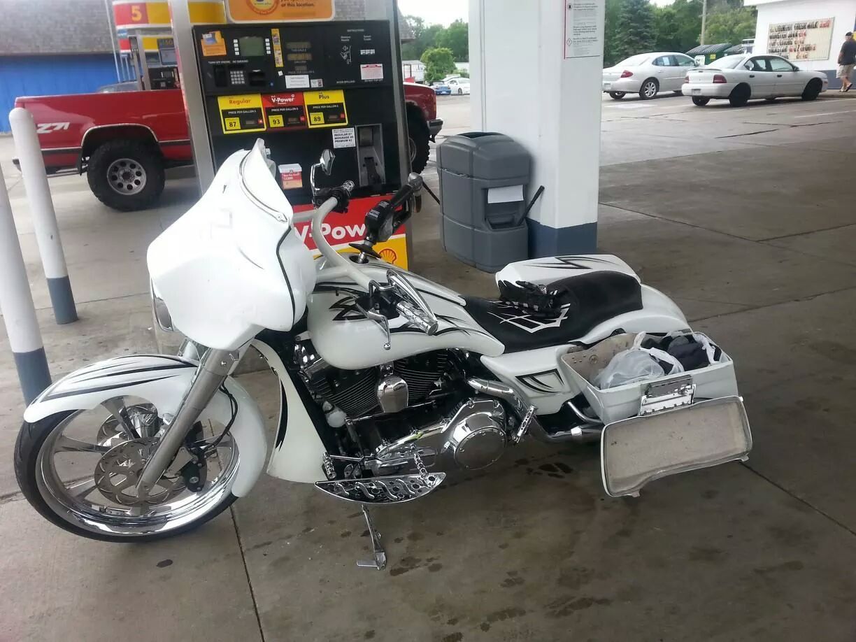 Bagger big 23" wheel Harley Electra street road glide custom raked chrome white