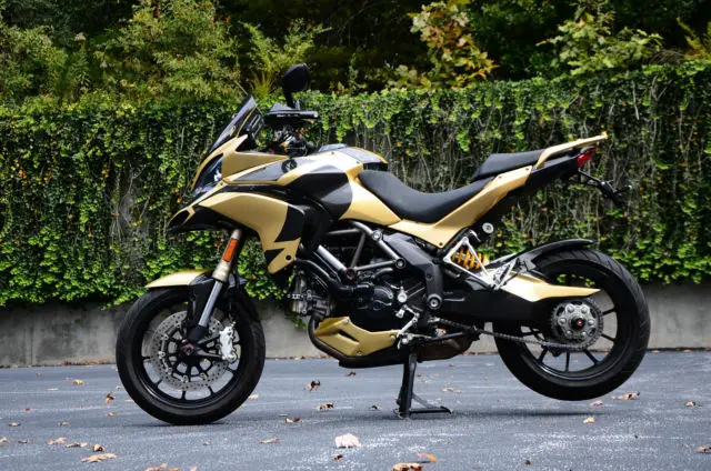 I've owned almost every Ducati bike since 916/996 era. and this Multistrada 1200 has been my favorite among them all. It's comfortable. perfect sitting position. potent power to the rear wheel with plenty of touring options. We've made so many both practical and vanity upgrades to her since I bought it in 2011 from the first owner. It has been to several motorcycle trade shows since then and have drown crowds over at gas stations. It's a poster-ready motorcycle. We named it the "GoldenStrada". Now I'm replacing my fleets so this bike has to go. It has been meticulously maintained with all the records. This is ONE-OF-A-KIND bike. full carbon fiber bodywork with flawless professional paint job (NOT cheap tape over decals!) Have always been garaged and mainly used as a show bike. Here is a list of upgrades. Full Carbon Fiber bodywork including Full Carbon Headcowl (very hard to find and install)Carbon Fiber Shorty Windscreen (custom made!)Carbon Fiber BeakCarbon Fiber Acerbis Handguards with turn signal (custom made!)Carbon Fiber Tank Covers. all sidesCarbon Fiber Swing Arm Cover with Chain Guard (custom made!)Carbon Fiber Belt Covers (2 pcs)Carbon Fiber Knee InsertsCarbon Fiber Side FairingsCarbon Fiber Belly Pan (all 3 pcs)Carbon Fiber Tail CowlCarbon Fiber Exhaust CoverCarbon Fiber Front FenderCarbon Fiber Hugger LongEvotech of ItalyTail Tidy/Fender Eliminator (This is the best designed tail tidy you can find. Made in Italy. )CNC machined Triple Tree Top Clamp in GoldSpeedyMotoFront Axle SlidersFrame Slider KitALTRiderRadiator GuardI never added the total - it will break my heart. A quick glance will tell me it's easily over $4. 00 invested in all these accessories. What comes with the bikeBrand New Rear Tire (OEM spec 190/55ZR17 Pirelli Scorpion Trail)OEM Side Cases (stock red color. I never used them). OEM Windscreen OEM Red Key and a brand new Remote Key (not programmed. you need to take it to your duc dealer so they can program it. I bought it from Atlanta Motorworld and before I got time to come over they're now closed. ) Users ManualAlmost all purchasing and servicing records. Clear Title. Private OwnerCompliments. smiles and stares (mainly from girls. you may not want to tell your better half all of these). You can read all OEM specs on the web. You can browse all the Multi's on the web. You come back here and buy the one and only "GoldenStrada" from me. The bike is located in Atlanta and can be looked at during business hours. I've used several professional bike shippers in the past and can help buyer in shipping. I can deliver the bike within 100 miles of range for free. Questions? email or call Daz at 678 * 534 * 1366 x 103Happy Bidding!