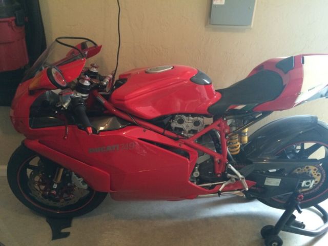 UP FOR AUCTION IS ONE AWESOME SUPERBIKE. IT'S A 2006 DUCATI 749 WITH LOTS OF 749R UPGRADES. THE BIKE WAS RECENTLY BOUGHT FROM AN ARMED SERVICE PERSON WHO WAS GETTING TRANSFERED. BOUGHT IN SOUTH CAROLINA AND NOW IN ALABAMA. NEVER DROPPED OR SCRATCHED. ALMOST PERFECT IN EVERY WAY. LOTS OF CARBON FIBER UPGRADED. DRY CLUTCH. POWER PACK III MODULE. ASV LEVERS. GAS BITUBO STEERING SHOCK. BULLDOG STAND. ITALIAN SEAT. CHECK OUT THE PHOTOS FOR ALL THE UPGRADES. MATCHING HELMETS AND CARRYING CASES. RUNS PERFECTLY. 2 SETS OF KEYS AND A MAINTENANCE KEY. THIS BABY WILL FLY BUT TOO MUCH FOR AN OLD MAN. ALWAYS BABIED AND TAKEN CARE OF. TIRES ARE GREAT. IT WOULD COST YOU OVER $15000 TO REPLICATE THIS BIKE. ALL PAPERWORK AND MANUALS INCLUDED. DON'T LET THIS ONE GET BY YOU.