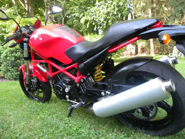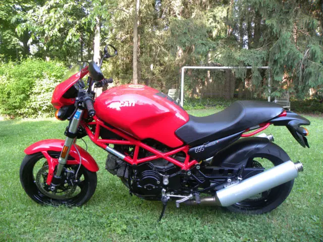Up for sale 2008 Ducati 695 completely stock with 11000 miles. Bike is adult owned. New tires were installed less thenthousandmiles ago. All the services are up to date. Clean title. Bike comes with 2 black keys and 1 red key (for service) and key code card.*Note the right side fearing cover (black cover) was off when i took the pictures. Cover is back on the bike now.