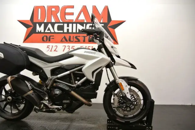 YOU ARE LOOKING AT A 2014 DUCATI HYPERSTRADA WITH ONLY 26 MILES ON IT. IT IS ARCTIC WHITE IN COLOR AND POWERED BY A 821cc FUEL INJECTED ENGINE AND 6 SPEED TRANSMISSION. THIS BIKE COMES WITH ABS AND 2 KEYS.