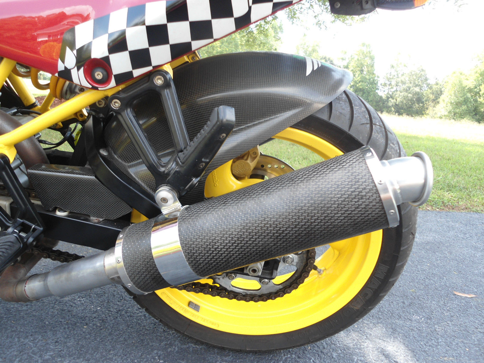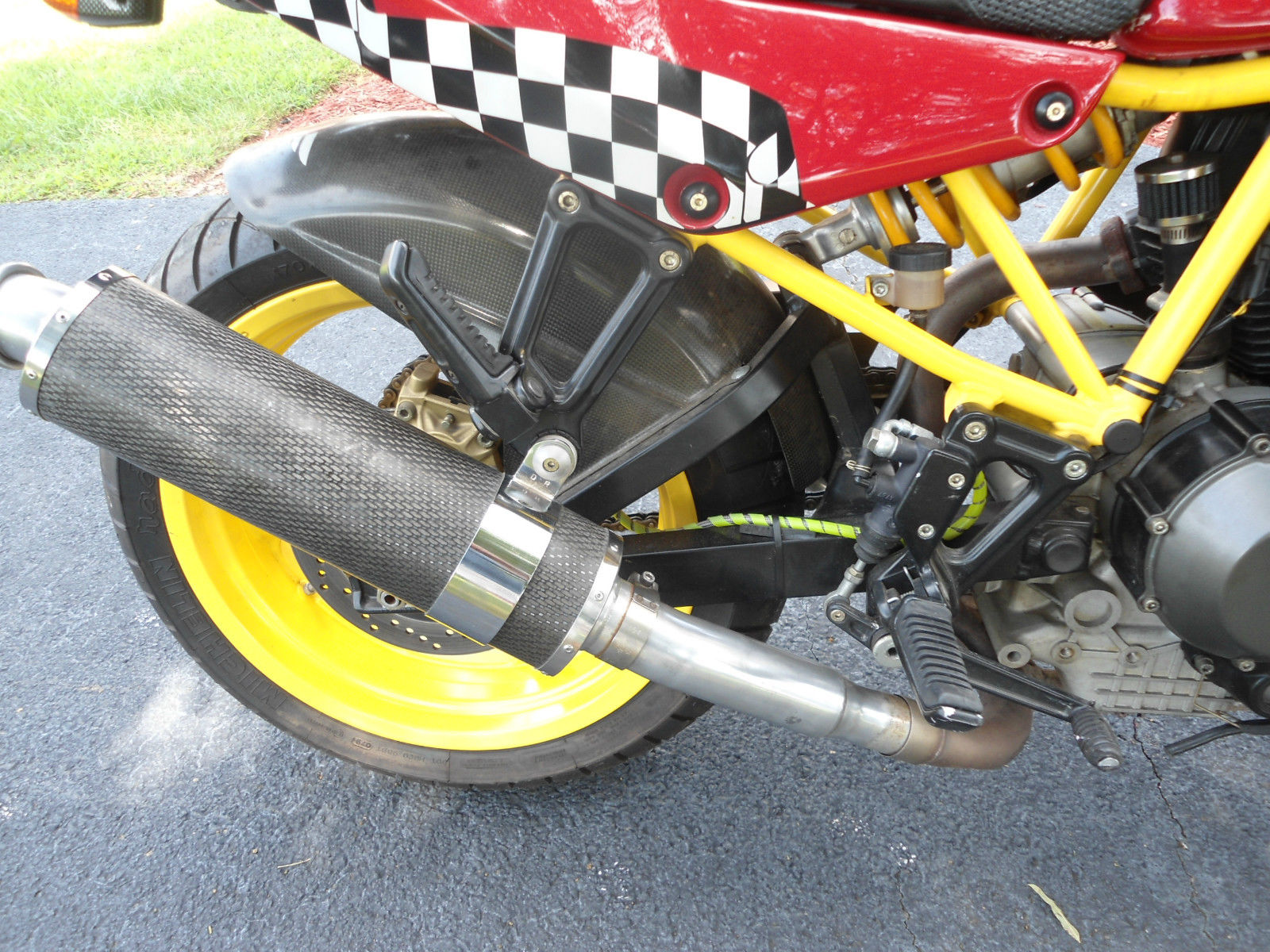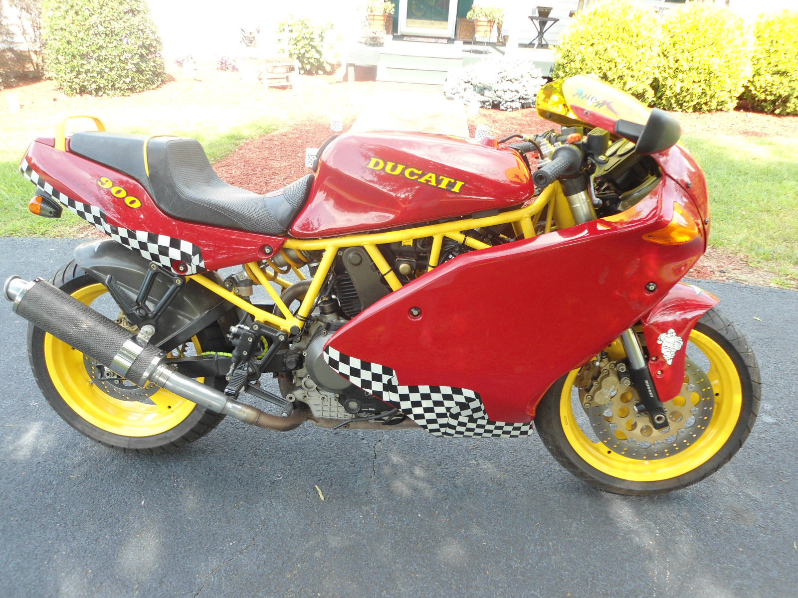 TIMS has an extremely rare 1992 ducati 900 ss sp for sale--only 100 of these bikes were brought into the usa that year---it has the better fully adjustable showa suspension. he lighter and better aluminum swingarm and the wider rear wheel--the motor has had recent high comp pistons installed. mildly ported head . yna jet kit and k/n air pods--the motor has been balanced and dynoed and it registered 84 rear wheel hp--a 22% hp increase and 25% increase in torque-i have lots of documentation on it including the dyno sheet-this bike is a blast to ride and handles extremely well (i have many other ducatis including some crs and they dont handle this well. or have the hp that this one does -- (i will be listing some of them soon too)--it also has d&d carbon fiber exhaust cannisters. s well as other carbon parts including cam belt covers. hain guard. ear wheel hugger and rear fender that can be seen in the pics--it was painted in period red with yellow accents which was a common thing to do back in the day ---it has michelin macadam tires with plenty of tread left on them--the paint is perfect other than a couple spots on the right hand fairing lower up at the top by the upper fairing which have been touched up fairly decent . s it appears something may have fell on it in the past--otherwise its a immaculate ss sp and needs nothing --collectors dont miss out on this rare duc or if youre wanting to get into a ducati to ride inexpensively this is a perfect 1st one to own and you probably wont see one like it on the road either--- TIMS will assist with shipping in any way we can at new owners expense--this is a no reserve auction so dont miss out on it---fell free to contact us at 1-877-timscbx 10-5 eastern time mon-fri if you have any questions --