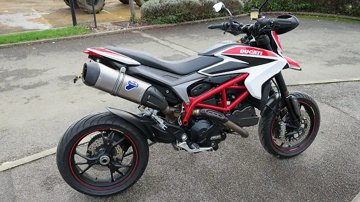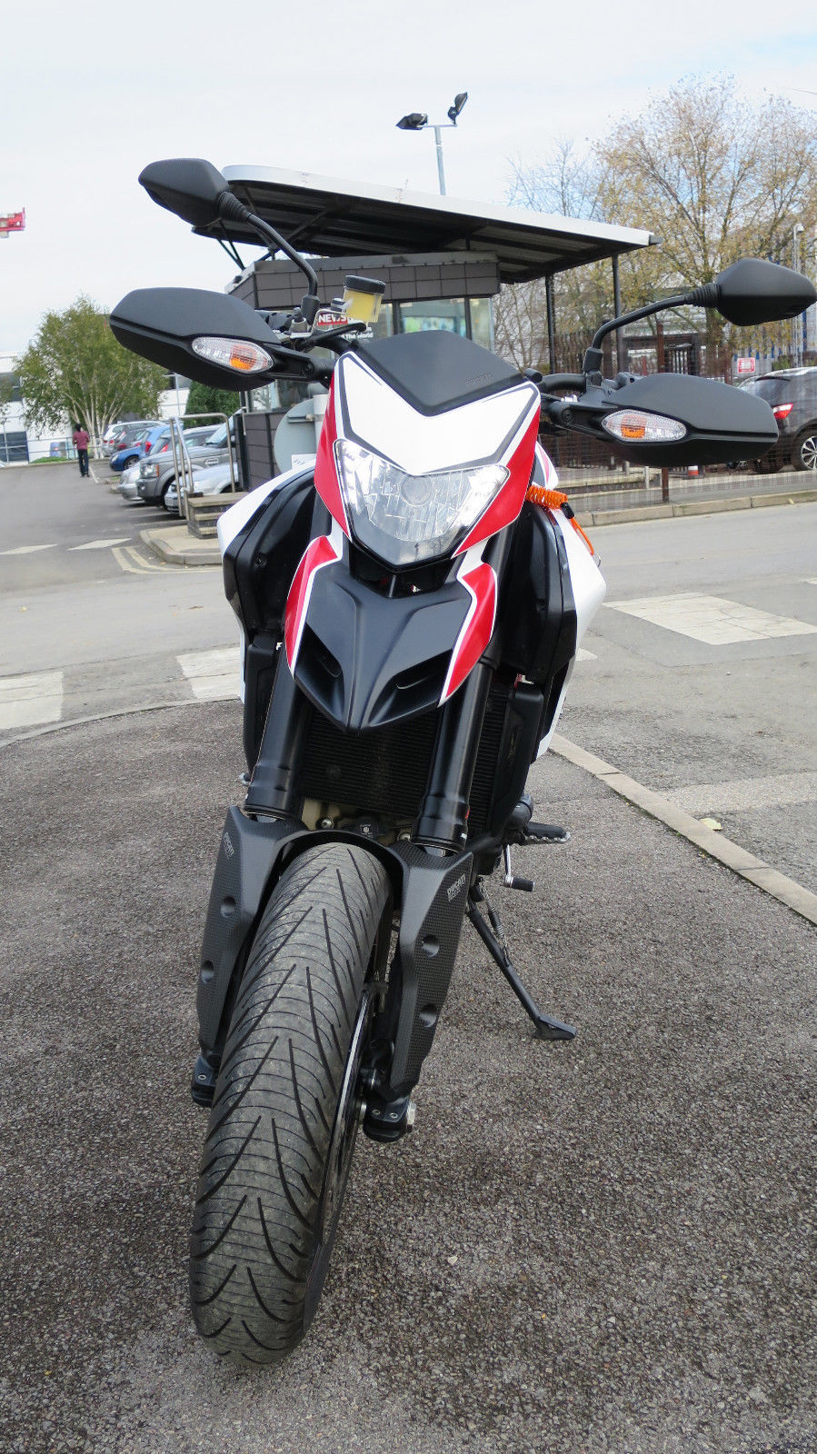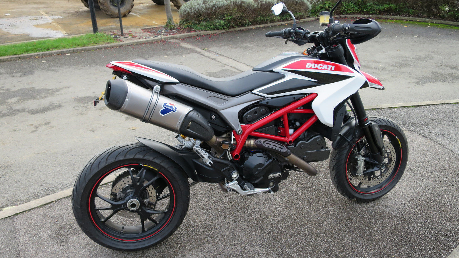 All the standard ?–hlins and carbon fibre of the SP model. All the booklets. V5 and spare key that you would get with a new bike. The bike has a R&G tail tidy with rear Rizoma LED indicators. 3030 miles. Registered June 2013. Full screen slideshow here. http://s1376. photobucket. com/user/duch9/slideshow/Ducati/Hypermotard%20SPDealer fitted:Complete Full system Termignoni Racing exhaust in carbon/titanium in raised position. This is ??1700 just for the exhaust.  Note: This is not a slip on. its a full race system. (No CAT). Original brand new unused shiny OEM exhaust system included. + Upmap in box. Included:Remainder of manufacturers warranty. June 2015Next service at 7500.  Tyres: Michelin Pilot Road 3 - look newOEM Standard exhaust in box. never used. all shiny. HPI clean. no finance owed. Owned by myself. No previous owners.  Ducati Dealer fitted:Ducati Heated grips. fitted by Ducati Dealer. Press the star button for heat. change via dash. Biketrac tracker. has 2 more years on it. They call if the bike is moved. can track journeys including speed if required. Also track the bike if the worst happens. Fitted by Authorised installer at Ducati Dealer.  Datatagged by dealers. Additional fittings:R&G Tail tidy LED lightRizoma Rear indicators. Bought from Ducati Aylesbury. All service and work done by them too. Great guys!Based in London. Any questions please ask. Genuine reason for sale. The bike is amazing as many will tell you. The full system really makes you understand what you bought a Ducati for! :DFull screen slideshow here. http://s1376. photobucket. com/user/duch9/slideshow/Ducati/Hypermotard%20SPPolite notePlease don't ask me for a part exchange. shipping the bike or giving test rides.  Ducati Hypermotard SPA raised set-up. forged Marchesini rims. fully adjustable suspensions with an ultralight Marzocchi aluminium front forks and ?–hlins rear shock absorber for an extraordinary dry weight of 171 kg. ABS and Ducati Traction Control as standard. so you can concentrate on having a good time. And the incredible Ducati Corse livery underlines the fact that the Hypermotard SP is an uncompromisingly sporty bike. ready to face any challenge.