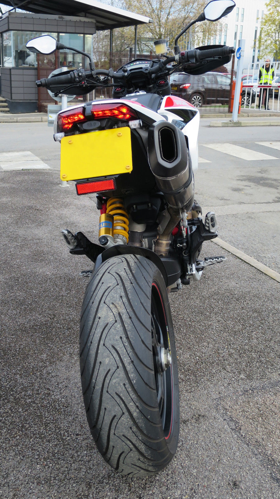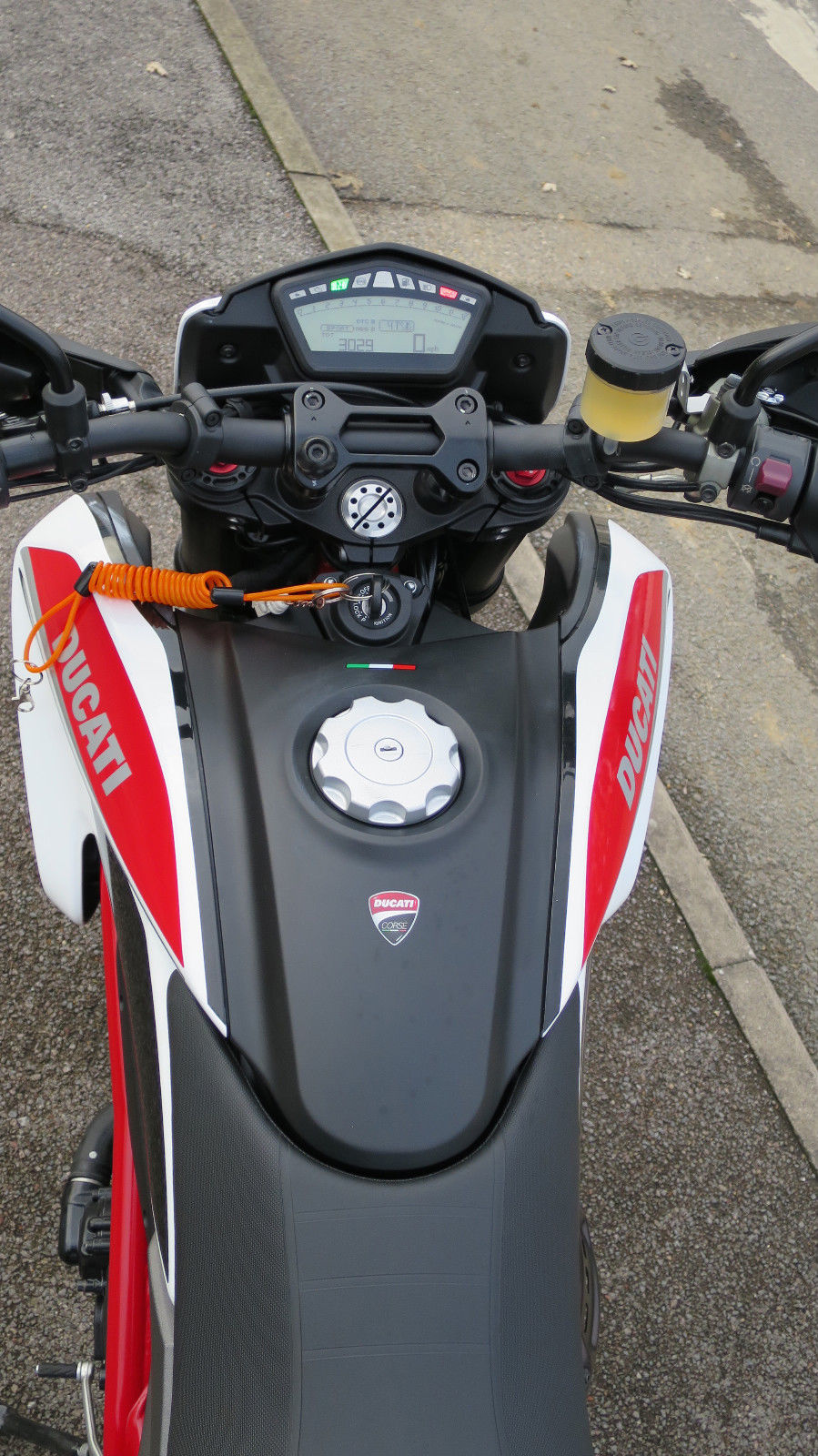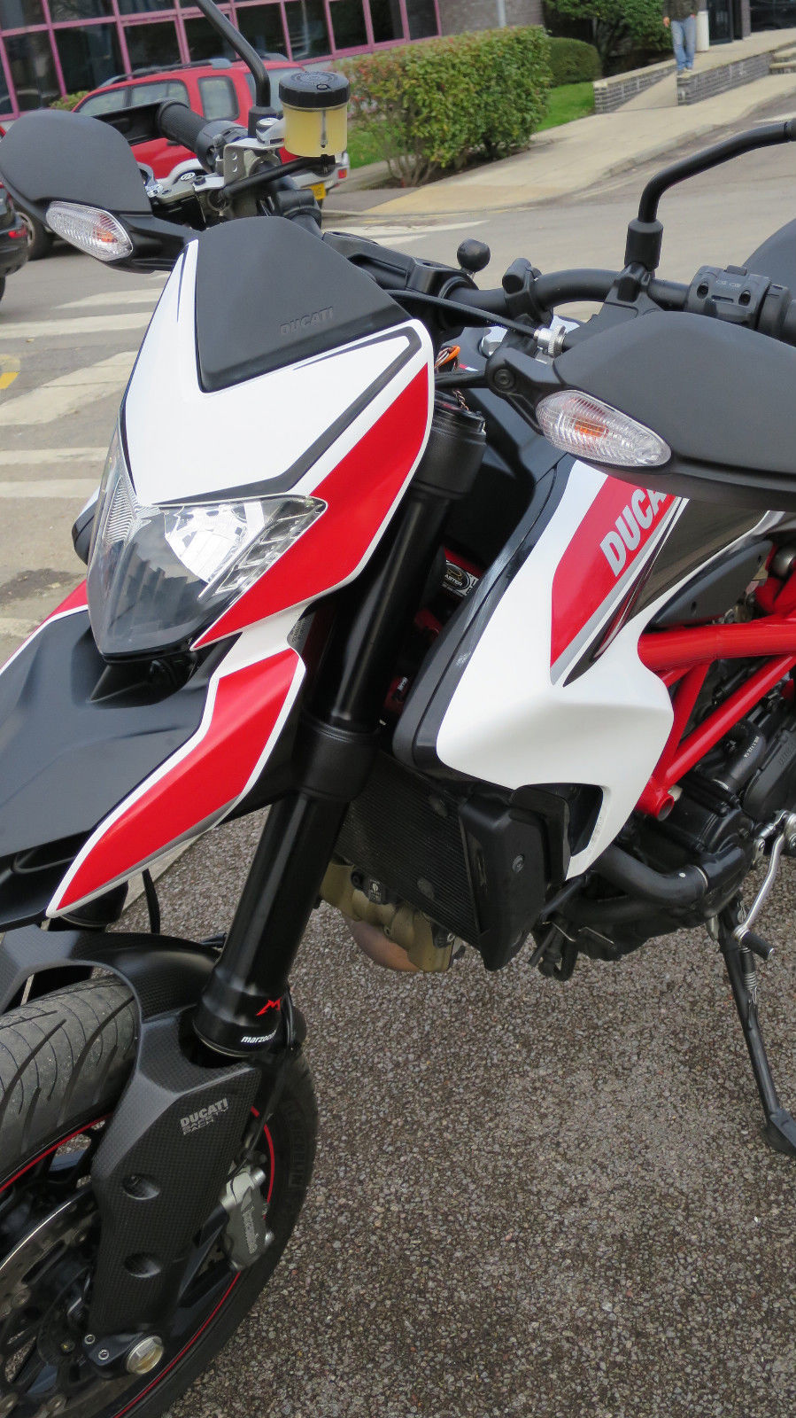 All the standard ?–hlins and carbon fibre of the SP model. All the booklets. V5 and spare key that you would get with a new bike. The bike has a R&G tail tidy with rear Rizoma LED indicators. 3030 miles. Registered June 2013. Full screen slideshow here. http://s1376. photobucket. com/user/duch9/slideshow/Ducati/Hypermotard%20SPDealer fitted:Complete Full system Termignoni Racing exhaust in carbon/titanium in raised position. This is ??1700 just for the exhaust.  Note: This is not a slip on. its a full race system. (No CAT). Original brand new unused shiny OEM exhaust system included. + Upmap in box. Included:Remainder of manufacturers warranty. June 2015Next service at 7500.  Tyres: Michelin Pilot Road 3 - look newOEM Standard exhaust in box. never used. all shiny. HPI clean. no finance owed. Owned by myself. No previous owners.  Ducati Dealer fitted:Ducati Heated grips. fitted by Ducati Dealer. Press the star button for heat. change via dash. Biketrac tracker. has 2 more years on it. They call if the bike is moved. can track journeys including speed if required. Also track the bike if the worst happens. Fitted by Authorised installer at Ducati Dealer.  Datatagged by dealers. Additional fittings:R&G Tail tidy LED lightRizoma Rear indicators. Bought from Ducati Aylesbury. All service and work done by them too. Great guys!Based in London. Any questions please ask. Genuine reason for sale. The bike is amazing as many will tell you. The full system really makes you understand what you bought a Ducati for! :DFull screen slideshow here. http://s1376. photobucket. com/user/duch9/slideshow/Ducati/Hypermotard%20SPPolite notePlease don't ask me for a part exchange. shipping the bike or giving test rides.  Ducati Hypermotard SPA raised set-up. forged Marchesini rims. fully adjustable suspensions with an ultralight Marzocchi aluminium front forks and ?–hlins rear shock absorber for an extraordinary dry weight of 171 kg. ABS and Ducati Traction Control as standard. so you can concentrate on having a good time. And the incredible Ducati Corse livery underlines the fact that the Hypermotard SP is an uncompromisingly sporty bike. ready to face any challenge.