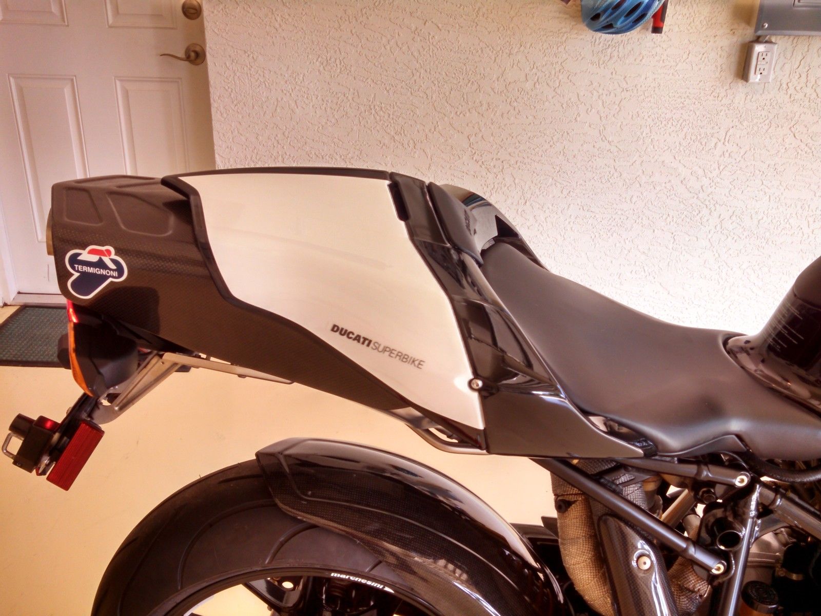 Excellent and rare example ( black ) of 999 S. Always garaged and regularly serviced. Never tracked. 6000 mile service completed ( valve clearances. ew timing belts. ew spark plugs. new air filters. ew coolant. etc ). New oil cooler. Termignoni exhaust and ECU. ( original exhaust and ECU comes with the bike ). carbon top sides. carbon hugger. carbon clutch cover ( original unused clutch cover comes with the bike ). nes stainless clutch plate springs. new golden D. I. D. chain. new front and rear sprockets. new Lithium Shorai battery ( incredibly light ). new rear tire ( Michelin Pilot Power ). front has 80% tread remaining. Fast by Feracci handle bars. clear white mirror lenses. " S" model is upgraded high quality and performance version of 999. Its unique styling is timeless and this model of Ducati superbike is becoming a collector item . 2006 was the last year of production of 999 and 999 S.
