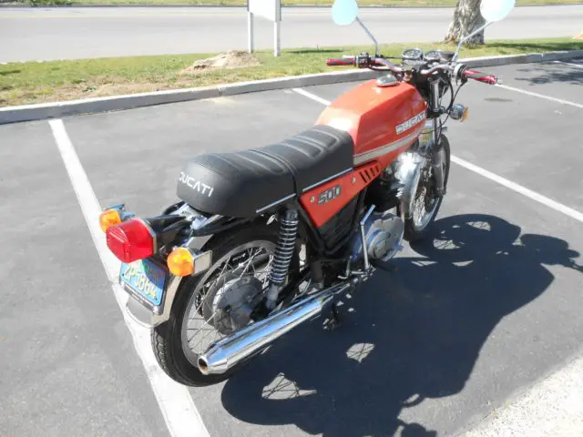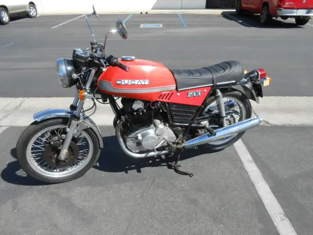 1977 Ducati 500cc GTL.  It looks together but its not ! I bought the bike roughly 10 years ago.  The motor was frozen.  It had a title when I bought but I can?ˆ™t find it now.  I restore old Ferrari cars but love Italian bikes.  I took it all apart.  I believe the miles on it are correct. It had been left out and got water in it. both Carburetors were frozen up as well as both pistons.  I got it apart without damage and was planning to make it all better.  I powder coated the wheels. fitted new tires. freed up both front calipers. honed the cylinders and fixed both carburetors. There is a corrosion mark in the cylinders that will not clean up so it needs to be rebored or re-sleeved.  The motor. with the exception of the cylinder the bores is in excellent shape. lower end is great. the head is good with no water damage. valves need doing but are OK. The valve guides feel great.  I put it all back together to show its all there. it has no rings on the pistons. I left the timing chain off it but everything for motor is all there. It selects all the gears OK.  It had no battery when I bought it and its missing the two GTL side covers. It?ˆ™s a great project for some enthusiast. I bought it in Northern California but the last tags it had on it were from March 1980 from Texas. Its a local pick up item.