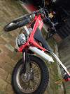 I purchased this Gas Gas Randonne new in June 2012 with the intention of learning to off-road.  I discovered that it wasn't for me and hence the bike has only covered 55 miles and now up for sale!  It's obviously in 'as new' condition.  It has upgraded wheels (as you can see the spokes are black and not the normal silver) from a higher spec Gas Gas model. The number plate has been adapted so that it doesn't hit on the rear tyre when the suspension compresses (which the original number plate did). The only fault with the bike is the right hand brake lever which got slightly damaged (curled up - please see the photograph) when the bike fell over (the only occasion).  Apart from this the bike is in top class condition - as you would expect for such a low mileage vehicle. The bike is currently SORN'd. Any questions. please contact me.  Thank  you.