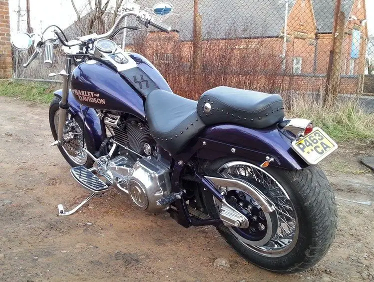 HARLEY DAVIDSON HERITAGE SOFTAIL HIGHLY MODIFIED HERITAGE SOFTAIL THE GUY WHO TRANSFORED THIS BIKE SPENT AROUND 15K DOING SO AND MADE AN EXTREMELY GOOD JOBCOMPLETE STRIP DOWN AND REBUILD POWDER COATED FRAME CUSTOM PAINT STAINLESS FAT BOY BARS CHROME SWITCHGEAR GRIPS AND LEVERS STAINLESS HEAD LIGHT SPARTO TAIL LIGHT CHROME NUMBER PLATE SURROUND EAGLE EYES INDICATORS FLUSH FIT POP UP FILLER CAPS STRETCHED FUEL TANKS WIDE FRONT END 80 SPOKE WHEELS AND THESE COST A FORTUNE 200 REAR CONVERSION BUT RUNNING A 160 TYRE SO AS NOT TO SPACE PULLYS CHROME REAR AXLE COVERS BILLET 6 POT REAR CALIPER FLOATING DISCS BRAIDED PIPES CHROME FOOTBOARDS CUSTOM REAR PEGS S&S BOTTOM END PERFORMANCE CAM MIKKUNI CARB SCREAMING EAGLE IGNITION HOOKER PIPES THE LIST GOES ON IT ALSO HAS A CURRENT M. O. T. STARTS AND RUNS PERFECT AND I AM SURE THERE ARE THINGS DONE TO THIS MACHINE I DONT EVEN KNOW ABOUT SHALL ADD MORE PICS IF THE WEATHER CHANGES AS THE ONES USED DONT DO THE BIKE JUSTICE AT ALL ANY MORE INFO ASK MAY P-EX ANYTHING CUSTOM THANK'S FOR LOOKING RELUCTANT SALE OF MY