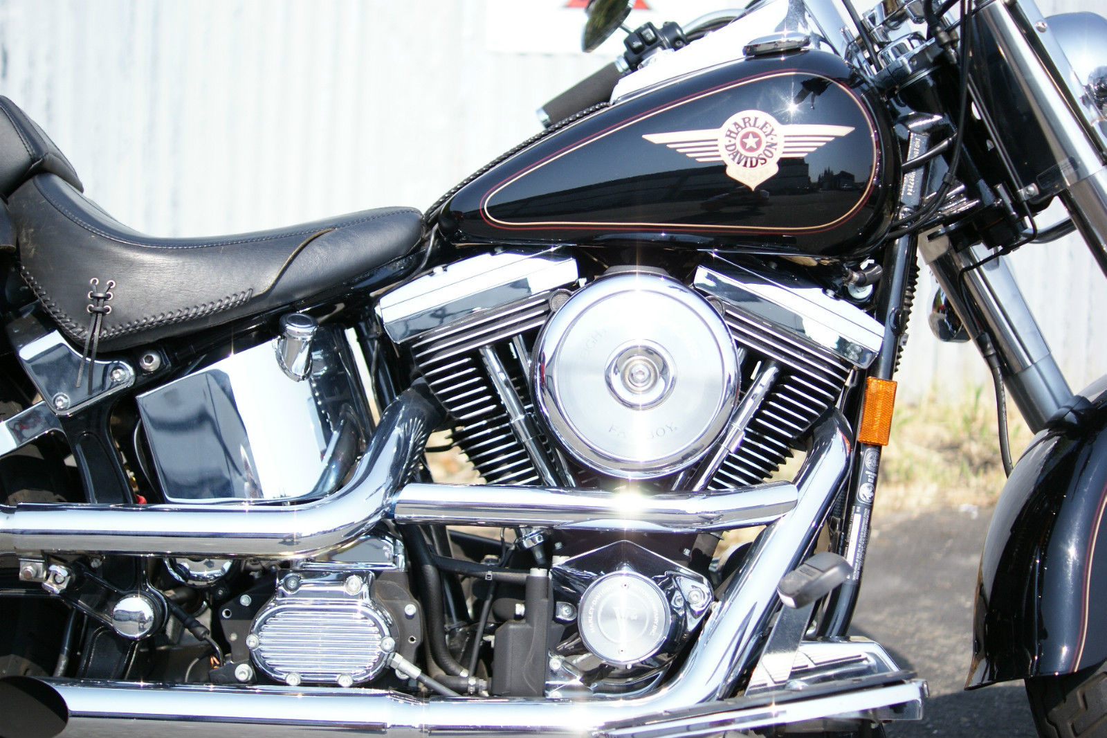 The FLSTF. or "Fat Boy" continued its run of popularity in 1998. The wide "beach bars" were still used. as were the solid wheels at both ends of the low-slung FL. Cosmetic changes were the only revisions to the 1998 editions. But with a runaway success. why mess with the formula? The original all-silver motif had been replaced in 1991. and every year saw different hues being applied to the sheet metal of the Fat Boy. The winged tank trim remained the same