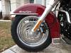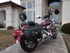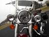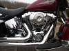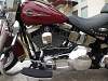The color of this bike is a factory solid finish in a Burgundy Pearl and when the sun hits that pearl coat it totally changes the look of this motorcycle. It is a classy nostalgic looking Harley as the Heritage Model is one of the more sought after Softails. The pictures as well do not due the paint finish justice. The Heritage Model features a nice oversized clear quick detachable windshield. quick detachable nostalgic studded leather saddlebags. and a sissybar that is removable. The seat is also detachable to just a solo style if desired. Very comfortable seat even on those long hauls. As you can see in the photos the saddlebags are not discolored or sagging as most you will see for sale. Most of that is because the bike has been inside in a climate controlled environment. The tires are still in excellent condition with no weather checking or cracking. The wheels all show like new with no deterioration on the chrome finish. In fact all of the chrome has no wear or peeling. There has been some accessories added including the Vance & Hines Exhaust System. chrome highway front crash bar. rear floorboards with chrome outer covers. chrome handlebar grips. and a storage bag on the back of the windshield. The bike comes factory with floorboards. chrome engine accents including chrome rocker covers and tappet covers. chrome oil tank. chrome outer primary. chrome headlight and passing light assembly. chrome laced wire wheels. powder coated engine and frame. and the list goes on. The factory style mini-ape hanger handlebars and with the softail suspension makes for a nice comfortable ride.
