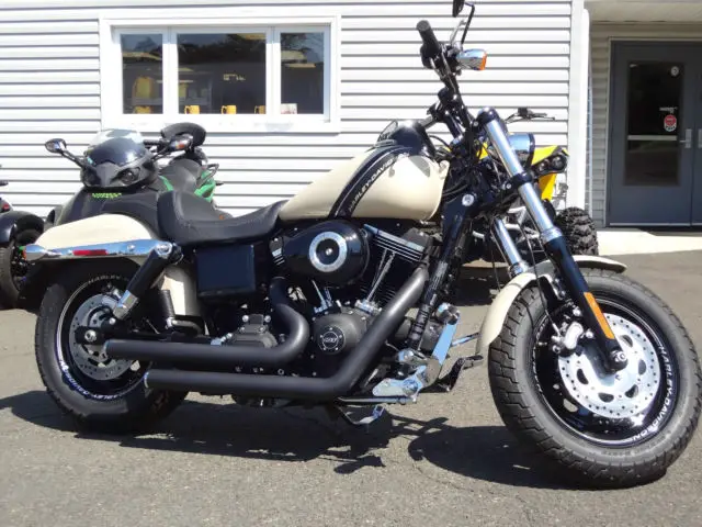 Upgraded exhaustForward controls and pegsHigh flow Harley Davidson air intakeHand warmers** comes with the stock pipe. pegs. and controls** The 2014 Harley-Davidson® Dyna® Fat Bob FXDF model is a Dark Custom™ cruiser with a big motorcycle feel. The Harley® Fat Bob model features a powerful air-cooled Twin Cam 103™ Harley engine with six-speed Cruise Drive® transmission. providing more performance power for passing. hill-climbing. and riding with passenger and cargo. For the custom style you want. the Fat Bob model motorcycle's beefy drag handlebar is truly reminiscent of an aggressive quarter mile monster. And with the wires routed through the steel. you get a clean. minimal look with nothing standing in your way of the open road. Add to that the wide stance and 16-inch front wheel. and you have a cool fat custom look with a powerful big twin engine. If you like the style of the blacked out. Dark Custom street brawling motorcycle. the Fat Bob was built for you. From the aluminum triple clamps and battery box cover to the headlight trim ring and rear shock covers. this thick-cut. menacing bad boy is blacked out from top to bottom. nose to tail. The high performance coil-over rear chrome shocks give a smooth ride and custom look. Learn more about this bike with a big motorcycle feel and the other Harley Dyna motorcycles. Also check out the Street Bob®. the Super Glide® Custom. and Wide Glide® motorcycles. SpecsManufacturer Harley-DavidsonModel Year 2014Model Dyna® Fat Bob®Price *$14. 00. 00Color Sand Cammo DenimMiles 1877DimensionsLength 94. 5 in. (2. 00 mm)Weight Dry: 673 lbs. (305 kg)Running Order: 706 lbs. (320 kg)Ground Clearance 4. 9 in. (125 mm)Wheelbase 63. 8 in. (1. 20 mm)Seat Height Laden: 26. 1 in. (663 mm)Unladen: 27. 2 in. (690 mm)EngineEngine Twin Cam 103™Displacement 103 ciBore x Stroke 3. 87 x 4. 374 in. (98. 4 x 111. 1 mm)Torque 98. 8 ft. lbs. (134 Nm) @ 3. 00 rpmCompression Ratio 9. 6:1Fuel System Electronic Sequential Port Fuel Injection (ESPFI)Fuel Tank Capacity 5 gal. (18. 9 l)MPG Rating 42 mpg combined (5. 6 l/100 km)Cooling AirExhaust Chrome. "Tommy Gun" 2-1-2 collector with dual mufflersOil Capacity 3 qt. (2. 8 l)DrivetrainTransmission 6-speedPrimary Drive Chain. 34/46 ratioGear Ratio 1st: 9. 3112nd: 6. 4543rd: 4. 7934th: 3. 8825th: 3. 3076th: 2. 79Brakes/Wheels/TiresBrakes Front: 4-piston fixedRear: 2-piston torque-free floatingWheels Front & Rear: Machined. aluminum slotted discTires Front: 130/90B16 67HRear: 180/70B16 77HElectricalLighting High beam. directional light bar. neutral. low oil pressure. engine diagnostics. turn signals. security system (optional). 6-speed. low fuel warningsInstrumentation Tank-mounted electronic speedometer with odometer. time-of-day clock on odometer. dual tripmeter. RPM / gear display. fuel gauge with low fuel warning light and countdown feature. low oil pressure indicator light. engine diagnostics readout. LED indicator lights. 6-speed indicator lightOperationalRake 29°Trail 4. 92 in. (125 mm)Standard FeaturesThe all-new Fat Bob® motorcycle. Blacked-out finishes. slash-cut mufflers. one-of-a-kind tank graphics. Surly attitude hits a new high.  NEW - Slash-cut rear fender with LED tail lamp  NEW - Ergonomic. slim. sculpted 2-up seat  NEW - Blacked-out. Twin Cam 103™ engine  NEW - Black. machined aluminum slotted disc wheels with laser-engraved graphics  NEW - Blunt-cut mufflers *Seller is not responsible for shipping. ALL transportation must be arranged by the buyer*Also published at eBay.com