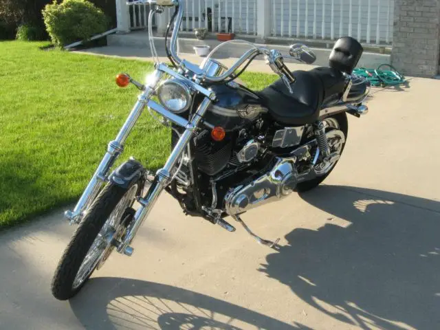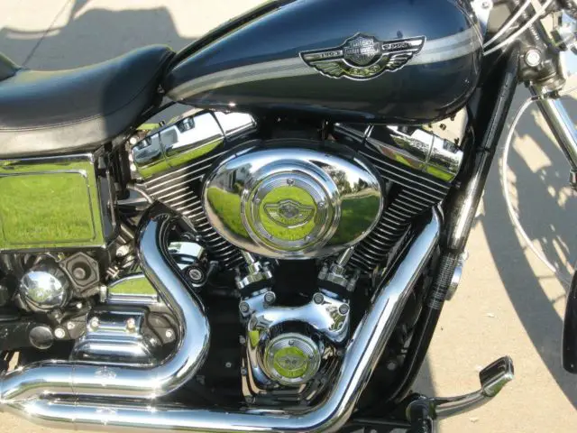 For sale under used over protected 2003 Dyna Wide Glide with ONLY 8300 miles. All services were done on a regular basis. I have all the original parts that were removed when chrome parts were added. Gold Key package with many extras including Vance & Hines 2 into 1 exhaust & multiple 100th anniversary extras. I would include 2 Harley full face helmets should you desire them. One is size extra large "his" and one is size medium "hers". The bike has a carburator not fuel injection. Low miles never really utilized to her capacity and someone should take advantage of my world class care!!Should you have any questions please feel free to ask. I will be happy to answer them for you.
