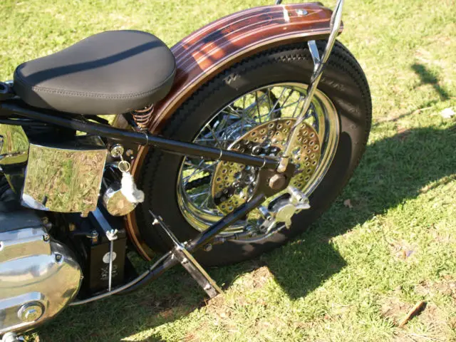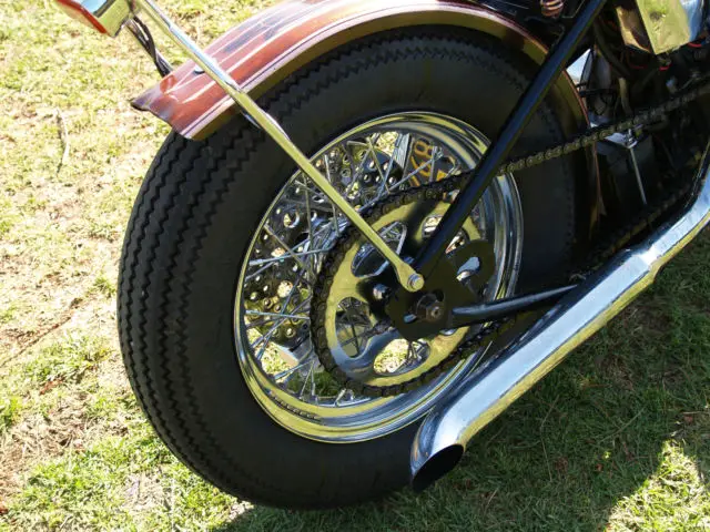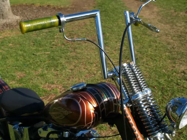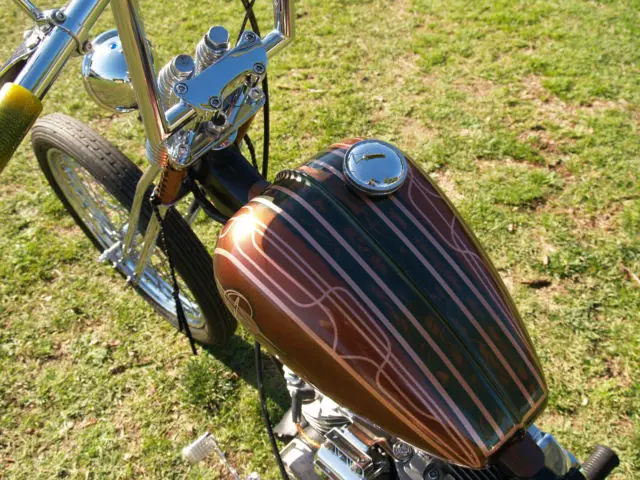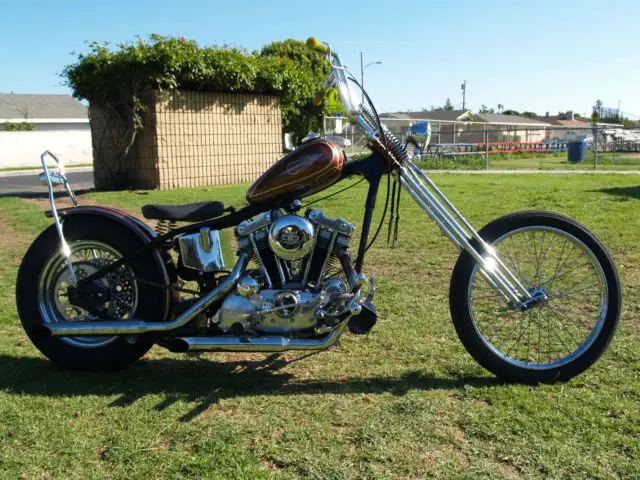 What you are looking at is a recent resurrection of a 'ol skool survivor from Norther California. I purchased this a couple of years ago as a rather roached out '70's or '80's build and the result is what you see here. The biggest thing I did was make it into a solo seat and brand new 3. 2 GAL tank. Dollar wise I had the motor gone through with new pistons/rings. flywheels rebuilt. heads etc. Nice Keihin carb period correct for the '76 motor that now rests in the '57 frame. Tranny was fine so we put that back in. The narrow springer is a period piece from Fremont CA; an early '70's Cycleology unit. I had it re-chromed. Tire is new speedmaster and the hub is a spool-type that is true. All the hardware is new. The frame is a actual 1957 that has been "goose necked" and hard-tailed sometime back in the '70's. I think its an early Denver's but cannot be certain. I basically blasted it and repainted it basic black. It used to be full of bondo and all smoothed out but I like to see the welds. New steering stem races w/tapered roller bearings. 3/4" rear axle. The rear brake rotor is a new floater and the caliper and master cylinder are rebuilt PM pieces with custom linkage and new lines by me. Stops nice. Rear tire is a newer gum dipped Firestone on a new rim. New chain. new sprockets. This bike is registered as a 1957 HD Sportster. clear title. motor number is on the title. Paint is lacquer with lots of sparkle and looks trick. My reserve is fair price for a period-correct chopper. $500 due at auction win and paid in full within 3 business days. You must arrange all shipping. I'll store it in my garage as long as you are paid in full. No warranty or returns. This is not a faint-of-heart cruiser for bozos. its a bike that you actually ride and must know whats going on around you. Call with any questions but I think I covered it all. Todd (805)844-5354Video: http://youtu. be/205TLy3hnjQ