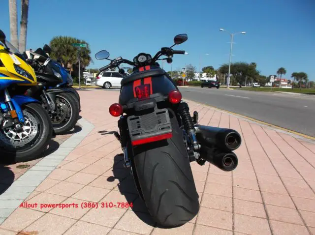 2012 HARLEY DAVIDSON NIGHT ROD WITH 9K MILES. GREAT CONDITION with a great price 2012 HARLEY DAVIDSON NIGHT ROD WITH 9K MILES. GREAT CONDITION. Engine Liquid-cooled. Revolution®. 60° V-Twin Displacement (in. /cc) 76. 28/1250 Fuel System Electronic Sequential Port Fuel Injection (ESPFI) Transmission 5-speed Miles Per Gallon 37 MPG combined City/Hwy Length (in. /mm) 93. 1/2366 Seat Height (laden) (in. /mm) 25. 6/650 Wheelbase (in. /mm) 67/1702 Tire Michelin® Scorcher® “11” front and rear • Front Scorcher® “11” 120/70ZR-19 60W • Rear Scorcher® “11” 240/40R-18 79V Wheel • Front Black Split 5-Spoke Cast Aluminum with Orange Pinstripe 19 in. x 3 in. (483 mm x 76 mm) • Rear Black Split 5-Spoke Cast Aluminum with Orange Pinstripe 18 in. x 8 in. (457 mm x 203 mm) Fuel Capacity (U. S. gals/liters) 5/18. 9 Weight as Shipped (lbs. /kg) 637/289 Frame Steel perimeter upper frame with hydroformed main rails and bolt-on lower frame rails; MIG welded Swingarm Polished. one-piece cast aluminum with black powder-coat finish Front Forks 43 mm Inverted Rear Shocks Preload adjustable Wheels: Black Split 5-Spoke Cast Aluminum with Orange Pinstripe • Front 19 in. x 3 in. (483 mm x 76 mm) • Rear 18 in. x 8 in. (457 mm x 203 mm) Brakes: • Caliper Type 4-piston front and rear • Rotor Type (diameter x width): Patented. one-piece floating rotor (front). uniform expansion rotor (rear) •Front (dual) 11. 81 in. x . 2 in. (300 mm x 5. 1 mm) •Rear 11. 81 in. x . 28 in. (300 mm x 7. 1 mm) •Anti-lock Braking System Available Suspension Travel: • Front 4 in. (102 mm) • Rear 2. 9 in. (74 mm) Color Options Solids Vivid Black. Blac
