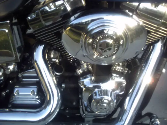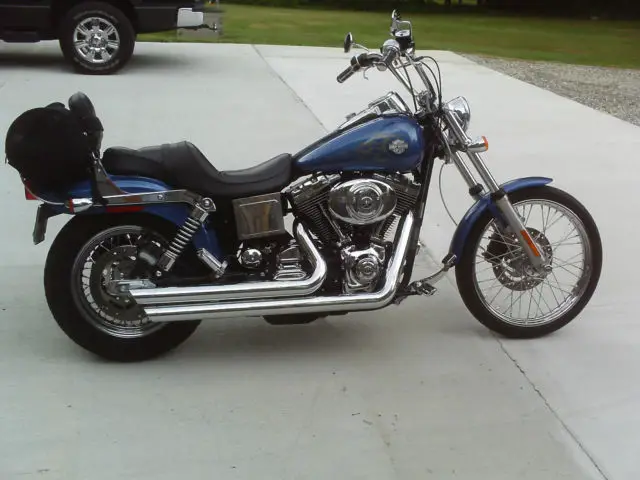 wide glide is in like new con. . no dings or dents. 3093 miles. FI. vance and hines pipes. removable windshield. kull theme. arage kept. have all stock parts goes with bike. ust cover and travel bag