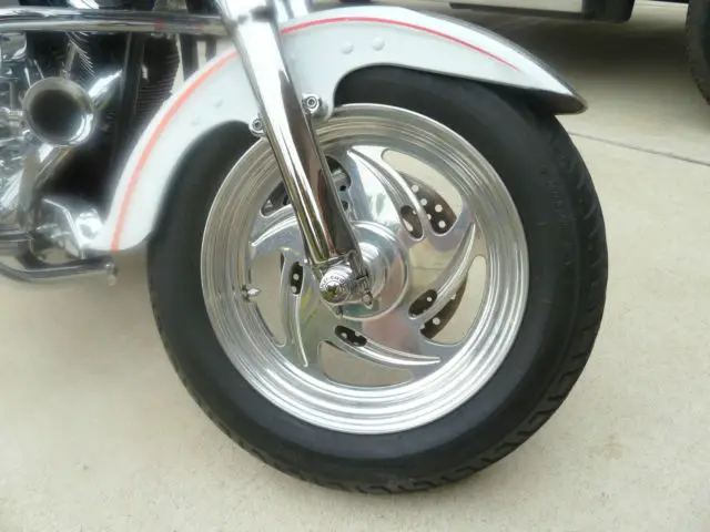 This Fatboy is one of a kind. The EVO 1340 engine with Diamond Cut Jugs and Heads is just the start of the extra level of detail this cruiser has. It also has Boyd Coddington forged wheels. great sounding shorty drag pipes. Full chrome front end just redone with new bearings and poly rubber. Blue Dot headlight . antique style spots. Wood grain Grips. Chrome Rotors and calipers. Stainless braided control cables. Mustang seat. (have extra Custom seat in Cowboy colors) Harley Fat Tanks. Custom Airbrush Paint. Quick release Windshield. Much more small custom touches on bike. Brand new rear tire. Back Tire 79%left. The Insurance Company unjustifiably had to issue a Salvage Title after we believe was a theft recovery after owner had been paid off for the loss. Never the less. it is in outstanding condition and runs like a champ and as good as it looks. I have Harley Dealerships serviced and maintained this bike for the past four years and take it in for any squeak I hear. Always garaged kept and only ride on a nice days. Have Dust cover. Docking station and lift that I will let go with bike. I also have brand new in the box side saddlebags as well as new in box 12" mini apes and new extension wire harness. A box of original misc. parts and led rear signal lights. All this will go with bike. Hey! even a flamed Helmet. The bad is: Two little chips on left underside of gas tank and a little paint discoloring around gas filler caps. Reluctantly selling due to health and age.