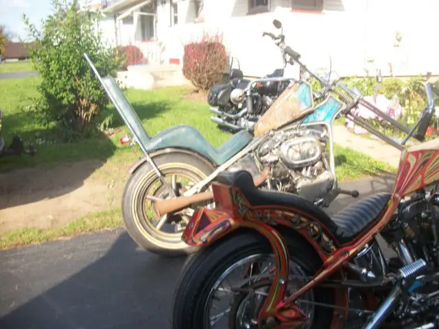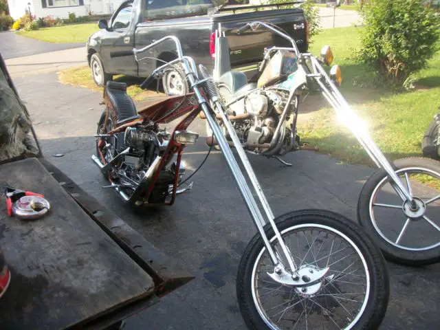 hi up for grabs long bike straight from 1969 ///just as i bought except rewired ///new battery //new wheel brgs/// brakes ///has regular ign switch ///has headlights 2 vintage yellow ones //tail n brake lite works too ///jockey shift //primo 3 in belt ol scool paint //squared frame/// way cool ///open nys registration from 2003 ///same as a title in ny /// numbers match cases n registration // /its a funny number but it looks good to me //same number as title ///i never titled i just switched plate from my other bike n ran ///i had heart sergury n havent ridden since the pics are my buddy this summer he started n drove around for me //i cant ride this no more gonna sell //all my choppers i got a mint pan basket n an evo chop for sale too inquire please ///started 2nd kik n idled like a charm ///been in garage since ///ex show bike for sure //sold as is as always no warranty //call 585 544 9924 mike anytime ///needs new volt reg i got one will give to new owner along with 2 new oil lines i got n never installed ///shipping to lower 48 //rest as 1st ///will help w shipping best i can but buyer responsible ///500 deposit after auction n money can be sent via wire ck or cash n in person ///its ready to go now ///ill be going to florida for 2 weeks in march so that wont affect your shiping plans overseas buyers welcome its a cool old bike also 4 sale locally n can end at anytime also open to buy it now if you like ///no refunds so buy what u want //ask questions