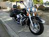 2002 Heritage Softail ClassicThis exceptionally clean bike runs and rides fantastic and comes with over $3. 00 in extras. Features include Screaming Eagle Exhaust. Thunderstar Wheel. Rear Passenger Backrest. Luggage Rack. Chromed Fork Cans and Lowers. Chrome Axel Covers. Chrome Front Disk. Chrome Front and Rear Master Cylinder Covers. Chrome Regulator Cover. Chrome Passenger Floor Boards. Custom Harley Grips. Lighted License Plate Trim. I will throw in a windshield bag. and she even comes with an American Flag! I also have a complete file of all the maintenance records from day 1. She is all detailed and touched up. and this consignment needs nothing other than a proud new owner! For further information please call Tony at 480-705-0199 Specifications: DIMENSIONS Length 94. 5 in. (2398. 4 mm) Seat Height (measure laden w/ 180 lb. rider) 25. 4 in. (644. 3 mm) Seat Height TUV (measure unladen; int’l measure) (676 mm) Ground Clearance 5. 1 in. (129. 9 mm) Rake 32. 0 degrees Trail 5. 8 in. (147. 2 mm) Wheelbase 64. 5 in. (1637. 0 mm) Tires: Dunlop Harley-Davidson Series II D402 Front MT90B16 72H Rear MT90B16 74H Fuel Capacity (includes 0. 5 gal. reserve) 5. 0 gal. (18. 9 L) Reserve Fuel Capacity 0. 5 gal. (1. 9 L) Oil Capacity 3. 5 qts. (3. 3 L) Dry Weight 695. 6 lbs. (315. 8 kg) Vehicle Weight In Running Order (int’l measure) (332. 8 kg) Gross Vehicle Weight Rating 1160. 0 lbs. (526. 6 kg) ENGINE Engine OHV Twin Cam 88B (balanced) Valves Pushrod-operated overhead valves;with hydraulic self-adjusting lifters; two valves per cylinder Bore and Stroke 3. 75 x 4. 0 in. (95. 25 x 101. 6 mm) Displacement 88 cu. in. (1450 cc) Compression Ratio 8. 9:1 Fuel System Carburetion (40 mm constant velocity with enrichener and accelerator pump); Electronic Sequential Port Fuel Injection (Single runner. 45 mm throttle bore ESPFI) Air Cleaner/Filter Elliptical style chrome with spun aluminum insert; high-efficiency. pleated paper filtration Ignition Single-fire. non-waste. map-controlled spark ignition system; electronic breakerless with multiple advance curve matrix Lubrication System Dry sump. internally mounted. crank driven gerotor pressure and dual scavenge pump with spin on 10? pressurized oil filter DRIVETRAIN Primary Drive Double-row chain; oil bath; mechanical tensioner; 25/36-tooth sprockets (1. 44:1) Final Drive Gates aramid fiber reinforced Poly Chain belt; 32/70-tooth sprockets; 2. 188:1 Clutch Multi-plate with diaphragm spring in oil bath Transmission Five-speed. onstant mesh Gear Ratio: 1st 10. 11 2nd 6. 958 3rd 4. 953 4th 3. 862 5th 3. 15 CHASSIS Frame Mild steel. rectangular section backbone w/twin downtubes Swing Arm Tubular mild steel Front Fork Hydra Glide Style Wheels 16 in. (40. 64 cm) front and rear laced wheels Wheel Bearings Dual-sealed. automotive-style. ball-type Brakes: Caliper type Four-piston front and rear Rotor type (diameter x width): Patented. Uniform Expansion Rotors Front 11. 5 in. x . 20 in. (292. 1 mm x 5. 08 mm) Rear 11. 5 in. x . 23 in. (292. 1 mm x 5. 82 mm) Suspension travel: Front Wheel 5. 10 in. (129. 5 mm) Rear Wheel 4. 34 in. (110. 24 mm) PERFORMANCE Engine Torque 85 ft. lbs. @ 3000 rpm (106. 9 NM @ 3000 rpm) Braking at 60 mph (97 kph): Maximum load (ft. /meters) 160 ft. (48. 8 m) Lean Angle (per SAEJ1168): Right 28. 9 degrees Left 28. 7 degrees ELECTRIC Battery Sealed. maintenance-free. 12-volt. 19 amp-hour. 270 cca (per Battery Council International rating) Charging 38-amp permanent magnet alternator with solid-state regulator (481 watts @ 3. 00 rpm. 494 watts peak) Starting 1. 2 kW electric with Bendix-type engagement Lights: (As per country regulation) Headlamp Quartz halogen 55-watt low beam. 60-watt high beam Tail/stop lights 8w/28w. (5w/21w) Turn signal lights (self-canceling) 28w. (21w) Running lights Front turn signals (except where prohibited by law) Indicator lamps High beam. neutral. oil. turn signals. engine diagnostics. and security system (optional) STYLING/CONVENIENCE Engine Trim Black and chrome Exhaust System Staggered shorty duals Oil Tank Chrome "Horseshoe" with chrome external oil lines Ignition Barrel keyed Windshield Detachable king-size Lexan Handlebars Classic touring Seat Custom solo saddle with removable passenger seat and passenger backrest Saddlebags 1950s-style. leather Brake Lever Full-length operator floorboards Shift Lever Heel-toe Rear Fender Supports Chrome Passing Lamps Chrome Fork Lock Common with ignition key Instruments Electronic speedometer with odometer and resettable tripmeter w/diagnostic capabilities and solid state tell-tale indicator module Flasher Hazard warning integrated into turn signal controls Directional Light Bar Chrome-platedThese are stock new specifications and alterations have been made. Buyer to review and verify all features and specifications. and inspections are welcomed. I also have this bike advertised locally and reserve the right to end this sale early. Thanks for looking!