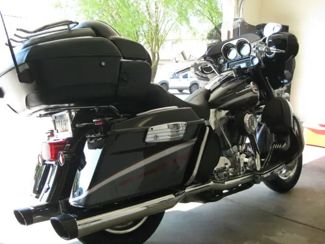 For Sale By Owner: 2006 Harley CVO Ultra Classic - Excellent Condition Many Options and in Excellent Condition. Includes 6 speed Screamin Eagle Trans. XM Sat. Radio. IPhone/IPod Controller. Heated Grips. KlockWerks Windshield (original included). Vance and Hines True Duals and Monster Oval Exhaust System. Race Tuner - has been on Harley Dyno to optimize performance. Leather Corbin Seat. Hog Tune Speakers front-rear-and Lower Fairing area. Chrome High Output Starter. Chrome Inner Primary. and all the normal CVO extras plus more. Adult ridden and very well maintained. Color is Black Candy Crimson and Charcoal Slate - Looks Great in Sunlight. Bike Runs Great and has no mechanical issues. Oil changed every 3000 miles. Bike is listed below market value for quick sale.