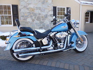 DescriptionCall TIM with any questions 717 278-1583 Call TIM with any questions 717 278-1583 Call TIM with any questions 717 278-1583 Call TIM with any questions 717 278-1583 Call TIM with any questions 717 278-15832011 Harley Davidson FLSTN Softail DeluxeAll I can say is WOW! I'm always pleased with the quality of the bikes I am blessed to find. but this one is over the top "like new"! A very comfortable ride for both rider and passenger on longer trips yet the FLSTN Deluxe provides a stylishly clean look if that is what you desire. This eye catching One-Owner 2011 FLSTN Softail Deluxe in the striking Cool Blue Pearl with only 5. 68 miles is one breathtaking machine. There is no doubt that this one will simply have them stopping. drooling. wishing and imagining throwing their leg over her and. You get my drift. With only 5. 68 miles the bike is simply devine. I purchased the bike a few weeks agon from the original owner in Honeybrook. PA roughly 15 miles from me. It was sold new at Hannums Harley Davidson in Chads Ford. PA. The bike has an ESP. Extended Service Plan. through 2/2/18. An ESP must be transferred by the new owner through your local Harley dealership. It has had immaculate care and is in "like new" condition. All things considered. this bike is well worth the coin. You will not replace this one with mileage this low for my asking price. The bike is simply impressive. I personally inspected and detailed the bike and saw nothing to even mention. There is not a ding. scratch. dent or anything that I detected. Every item on the bike works just as it should. The tires are 90% on the front and 90% in the rear. The leather seat is like new with no wear or damage. The chrome is beautiful and what you would expect on a low mileage One-Owner machine. In addition to all the standard features this beauty comes with a set of slash cut exhaust that are music to the ear. One of the most confidence-inspiring Big Twins. the Softail® Deluxe features an extremely low seat with "collapsing sides. pull back handlebar and riser. and easy-reach. extended kickstand. The powerful. counter-balanced Twin Cam 96B™ and 6-Speed Cruise Drive® transmission are appreciated by many riders. Exquisite style details round out every other corner of this bike. from the clean front light bar. to the tombstone taillight. to the chrome grab rail and luggage rack. to the laced wheels and wide whitewall tires. The addition of the new Security Package and anti-lock brakes. give even more functionality to all this form. Harley-Davidson FLSTN Softail Deluxe Model HighlightsSecurity Package option including factory-installed Harley-Davidson® Smart Security System with hands-free fobAnti-Lock Braking System (ABS)Hand controls with fewer wiresOdometer trip switchSingle button hazzard warningLarger odometer readout with gear and RPM displayFuel tank sender for accurate fuel-level readingsBlack powder-coated powertrain with chrome coversChrome over/under shotgun exhaustChrome. Laced Steel wheelsWide whitewall tiresMU85B-16 rear tireChrome nostalgic seven-inch ball headlampChrome oil tankChrome nostalgic tank console with electronic speedometerStainless steel. low-rise handlebarFull-length rider footboardsTwo-piece. two-up Softail® seat with "collapsing" sides and removable pillion and chrome grab railsIntegrated chrome luggage rackTombstone taillightFull-coverage front and rear fenders with chrome accentsJust some thoughts:You know. as Americans we’ve never lived in fear and we’re not about to start now. No high gas prices. no lyin politician and no slithering terrorist will ever keep me from ridin my Harley because FEAR SUCKS! Freedom and wind will outlast hard times and I don’t know about you. but I’m gonna ride no matter what! Now don’t you think it’s time for YOU to experience what our forefathers must have thought FREEDOM really looked like! There’s nothing like throwing your leg over the heart pounding V Twin engine that has been the heart and soul of a Harley Davidson for over 111 years. The feel you’ll get when you’re cruisin the streets… well that’s something every man dreams of and every woman secretly desires. So follow your dreams and make them a reality today. About Harleys Direct:I have been a Harley enthusiast for more than 25 years and enjoy them so much that I buy and sell them as a hobby. I handle only top quality machines and when I can get my hands on them. am able to offer them at better than average prices for identical motorcycles found at franchise dealerships. I can do this because I have no overhead and only one mouth to feed. My bikes are not purchased at Powersports Auctions; they are not repos or the bikes other dealers rejected. I purchase the majority of my bikes right out of the garages of the original owners and occasionally from auto dealerships where they are traded. I search high and low for the best motorcycles available and travel upwards of 250 miles in any one direction leaving home some days at 6am and returning many nights at 11pm to find my Harleys. I am positive that there isn’t anyone on the internet that works any harder than I do to bring top quality machines to their clients. I only offer above average inventory to the select few who are fortunate enough to "run across" a "harleysdirect" offering. Every bike is carefully gone over by a certified Harley technician with adjustments to all necessary components. a fresh oil change and a thorough test ride. I guarantee all my Harleys to be of the best quality and the cleanest found anywhere with no stories or long explanations. If you aren't 100% satisfied with your purchase I will happily release you with no questions and a full refund of your deposit. I have sold bikes to more than 43 states. Paris France. Costa Rica. Australia. French Polynesia. Beirut. Germany. Puerto Rico. Arab Emeritus Dubai. Canada. Laos. Thailand and many of my local communities and I do not have any unhappy client anywhere. I'm 