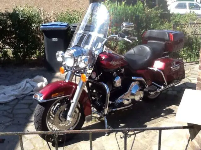 FLHRC. 1450 TWIN CAM. LLOY RIMS WITH SPOKES. OLOUR CODED. TAGE 1 WITH FILTER KIT. ARB KIT. amp;SCREAMIN EAGLE PIPES. Bought this from Harley Dealership . dinburgh Harley last year as second Harley to the one I have already. They said it had been serviced regular by previous owner. It's a great ride. been few hundred miles in the Warmer weather. But decided to just keep the one. and the other nor wins as it's fully customised and 30 grands worth. It comes with a bit of chrome blemishes on the engine parts as shown. iming cover and other front as shown in pics of the new ones Iv got ready to go on. Also bit on rocker covers but not got those. Cold now and Iv moved with garage. so buyer can fit them. llen key job. It's got the odd paint chips here and there but nothing to really worry about. Everything works as it should. Mot . in November. no problems. MOT til November 2015. It's taxed but can't sell that anymore. Nice extra comfy Sundowner Seat. all Boxes lock as they should. THIS IS PICK UP. YOUR COURIER ONLY. This is low start with a very low reserve it has to go as I'm off back to my warm Spanish Villa in a couple of weeks. Could possibly deliver if not too far as it's still insured. Inspection and test drive welcome. how me your insurance an leave a deposit and your licence tho. CASH ON COLLECTION OR BANK TRANSFER. DEPOSIT TO PAYPAL OF ?200 ONLYAny questions please ask. 01279 897158.