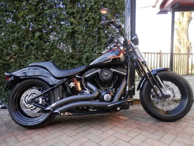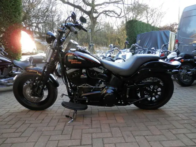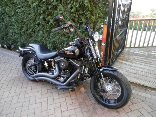 HARLEY DAVIDSON FLSTSB CROSS BONESTHESE ICONIC MACHINES ARE INCREDIBLY RARE ON THE USED MARKET SO I AM VERY PLEASED TO SAY THAT I HAVE SEVEN INCREDIBLE LOW MILEAGE EXAMPLES FOR SALE IN 4 DIFFERENT COLOUR WAYS. THIS MAGNIFICENT EXAMPLE FINISHED IN VIVID BLACK WAS PURCHASED FROM ITS SOLE OWNER RECENTLY WITH NOMINAL MILEAGE AND HAS BEEN IN A CHERISHED POSITION HAVING LIVED IN AIR CONDITIONED SPLENDOUR. SUBTLE CHANGES THAT WE HAVE MADE HAVE COME TOGETHER TO MAKE A STUNNING MACHINE. THE ENGINE HAS HAD OUR BLACKOUT TREATMENT IN SATIN AND WRINKLE BLACK EXTENDING TO ROCKER COVERS. PUSH RODS. CAM COVER. PRIMARY COVER. A FULL STAGE 1 PROGRAMME USING K+N AIR FILTER ALONG WITH BLACK CERAMIC BIG RADIUS VANCE + HINES EXHAUST SYSTEM HAS ADDED TO THE PERFORMANCE OF THE ALREADY POTENT 1584 CC SIX SPEED DRIVETRAIN. THE BIKE IS CURRENTLY SHOWN WITH A BADLANDER TAPERED SEAT BUT CAN EASILY BE CONFIGURED IN ANY FORMAT YOU REQUIRE WITH SPRUNG SADDLE. SOLO SADDLE. WINDSCREEN. CRASHBARS ETC. THIS BIKE IS SIMPLY STUNNING IT REPRESENTS INCREDIBLE VALUE AND IS SIMPLY IRREPLACEABLE. GUARANTEED FUTURE INVESTMENT. PLEASE DO NOT BE AFRAID TO COMPARE THE PRICE OF THIS SUPER LOW MILEAGE MASSIVELY SPECIFIED EXAMPLE TO STANDARD MACHINES ON THE MARKET TODAY. SIMPLY THE BEST. PLEASE CLICK ON SEE OTHER ITEMS IN THE TOP RIGHT HAND CORNER OF THE PAGE TO VIEW A SMALL SELECTION OF OUR VAST STOCK. UNLIKE MANY DEALERS WE ARE FOCUSED IN ONE AREA ONLY AND OUR AIM IS TO SUPPLY ONLY THE VERY BEST LOW MILEAGE LOW OWNERSHIP UNIQUE AND CONCOURSE QUALITY HARLEY DAVIDSON MOTORCYCLES FROM ALL ERAS ANTIQUE. MODERN. CLASSICS. ALL BIKES ARE HAND PICKED SOURCED AND VIEWED BY MYSELF. ALL OUR MACHINES ARE METICULOUSLY PREPARED TO THE VERY HIGHEST STANDARDS AND ARE ALL SUPPLIED WITH NEW MOT. EUROPEAN DELIVERY WEEKLY IN OUR OWN PURPOSE BUILT VEHICLES WORLDWIDE DELIVERY A SPECIALTY. IMPORTATION AND SOURCING OF RARE MACHINES IS A PLEASURE AND A SPECIALIST AREA UTILIZING KNOWLEDGEABLE AND RELIABLE WORLDWIDE CONTACTS. PLEASE DO NOT HESITATE IN CALLING FOR A FRIENDLY CHAT. PLEASE CALL MARC 07849-190371Â