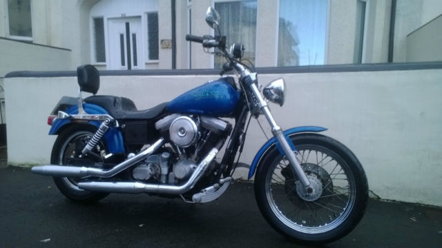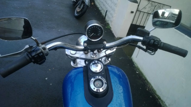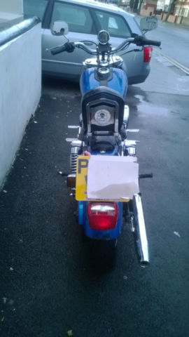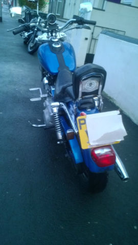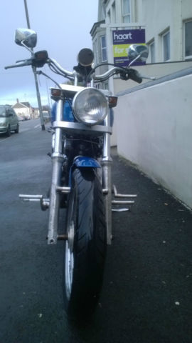 This is my sons bike which was in regular use up to Nov 14. It has been stood since then as it has various faults that need fixing before it can be put back on the road. They are as follows. engine mounts are completely shot(new ones supplied with bike). leaking rocker cover gaskets. Clutch cable stretched and 1 throttle cable snapped. Fork seals leaking. 1 footrest snapped off the forward controls and replaced with a long bolt(we have the footrest but it will need to be repaired). Seat split and taped. Other than that the bike is generally a bit tatty with a fair amount of rust (the photos make it look better than it is). On the good side it has only done 25. 00 miles. it has some custom goodies on it like the wide glide billet front end and the billet forward controls. It has braided brake lines front and rear and is fitted with a pair of Avon cobra tyres which have loads of miles left on them. MOT until Sept. It has loads of service history and previous mots. I started the bike today for the first time in a couple of months and the motor is really strong with no rattles or knocks. It is a shame that due to his current circumstances he can not afford to repair the bike although someone with their own workshop could do all these jobs quite cheaply. You are welcome to view the bike just get in touch with me through ebay. No buy it now and it is advertised elsewhere so could be withdrawn at any time. Payment in cash or a cleared check. No paypal and no overseas bidders and we don't want to swap it either. Thanks for looking. have a bid and grab a bargain.