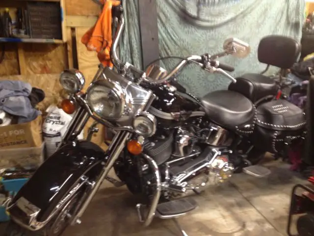 The bike is like new. The leather is perfect no stretches in it. It has absolutely no scratches or dents. It has a full black body paint job but has chrome trim in anyplace that can have chrome trim. The bike has custom/ after market exhausts. The bike has only had two owners. me and the owner of The House of Harley. As for payments we will accept only cash. certified checks. or pay pal. We do not ship. we would need you to either come pick it up or find a way to have it picked up.
