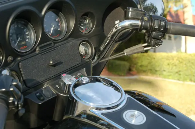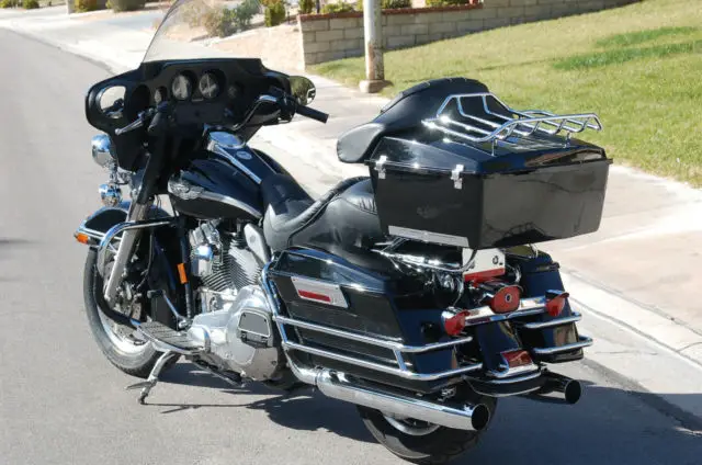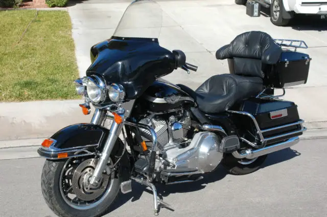 Pampered. 2003 H. D. Electra Glide FLHTI - Minty For auction is my fully functioning 2003 Harley Davidson Electra Glide Standard - MINTY. All genuine Harley Davidson. All buttons. switches and controls are intact and working. Brake pads. tires. belt drive have lots of miles remaining. Always used 100% synthetic oil in engine and gearbox. Las Vegas. Nevada Bike. no rust. no corrosion. Always garaged. Quick-release top trunk and bags can be removed when not used. Full gauges and speakers installed. Swap out glove box for optional radio All radio and intercom wiring installed (radio not included). Optional thigh heat-shields installed. Optional factory integrated rear view mirrors. (Stock mirrors also included. ) Factory plush King/queen saddle. Perfect condition. Left side engine case. Upgraded shift linkage. Right side engine case. Polished aluminum and casting for a lean. purposeful look. Optional factory Parade Center Stand installed. Rear Metzler Tire Front Metzler Tire Harley factory color-matched. cold weather lowers included. Genuine H. D. fairing cold weather wind deflectors included. Dimple on the front fender can be seen just to the right of the coin. Dimple is the size of the face on a Lincoln penny. Paint chipped on corner of left luggage lid. Paint chip on rear of front fender. Paint really is in overall excellent condition. What more can I add. it's an ElectraGlide! Customer must arrange for pick-up. Payment Due $500. 00 deposit upon close of auction. Balance must be paid via Paypal. Preferred Payment Methods Buyers can pay by credit or bank debit cards using PAYPAL. Shipping Speed I will release to your shipper within 24 hours of full payment. See my eBay feedback. You can buy from me with confidence. Auctioneer accepts Paypal only.