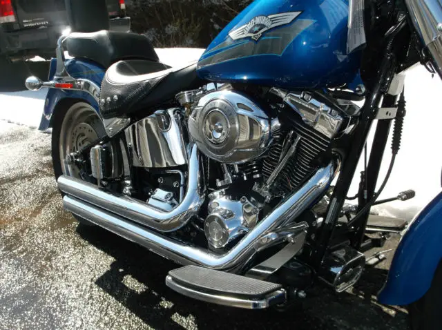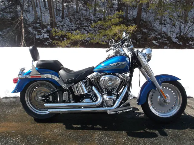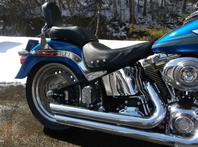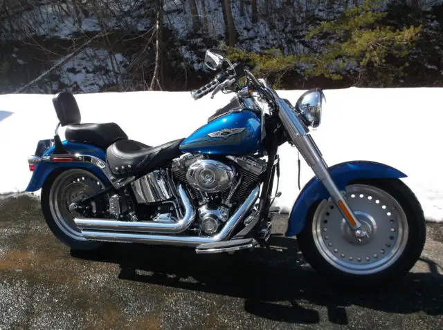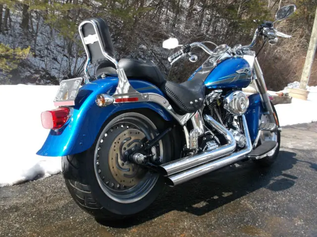 THANK YOU FOR VIEWING OUR AUCTION. AUTOSBYNELSON IS OFFERING A 2007 HARLEY DAVIDSON FLSTFI FATBOY. FUEL INJECTED LINKED TO A SIX SPEED TRANSMISSION. NO COLD STARTS OR HESITATION. AWESOME POWER. LOCAL TRADE THAT HAS ALWAYS BEEN GARAGE KEPT. NEVER DROPPED OR DAMAGED. NO RUST OR CORROSION. PAINT AND CHROME IS IN VERY NICE CONDITION. TIRES AND WHEELS ARE IN GREAT CONDITION. PREVIOUS OWNER ADDED TONS OF ACCESSORIES. FACTORY REAR PASSENGER BACK REST AND PAD. CUSTOM PYTHON EXHAUST. CHROME LAY DOWN TAG BRACKET. SMOKED TURN SIGNAL LENS. HROME WIDER REAR PASSENGER FOOT PADS. HROME HD AXLE COVERS. CHROME HD SHIFTER ROD. CHROME CUSTOM HAND GRIPS AND CHROME SWING ARM INSERTS. CHROME VOLTAGE REGULATOR. CHROME SPEEDOMETER VISOR. MATCHING CHROME SHIFTER PEGS. AND BRAKE PEDAL. CHROME OIL PRESSURE GAUGE AND BRACKET. OUR BIKE ALSO HAS THE FACTORY WIDE TIRE AND FENDER UPGRADE. WE HAVE A CLEAR AND CLEAN TITLE ON HAND AND ALL PAPERWORK WILL BE PROCESSED THRU OUR CHEVROLET DEALERSHIP TO GUARANTEE YOU ALL PROPER PAPERWORK NEEDED FOR YOUR LOCAL DMV. $49. 00 DOC FEE WILL BE ADDED TO THE TOTAL AUCTION PRICE. PLEASE BID TO BE 100% SATISFIED WITH YOUR PURCHASE. ALL QUESTIONS PLEASE EMAIL THRU EBAY OR CALL MY CELL 336 648 4900. PLEASE VIEW OUR PAST FEEDBACK COMMENTS FROM PREVIOUS CUSTOMERS.