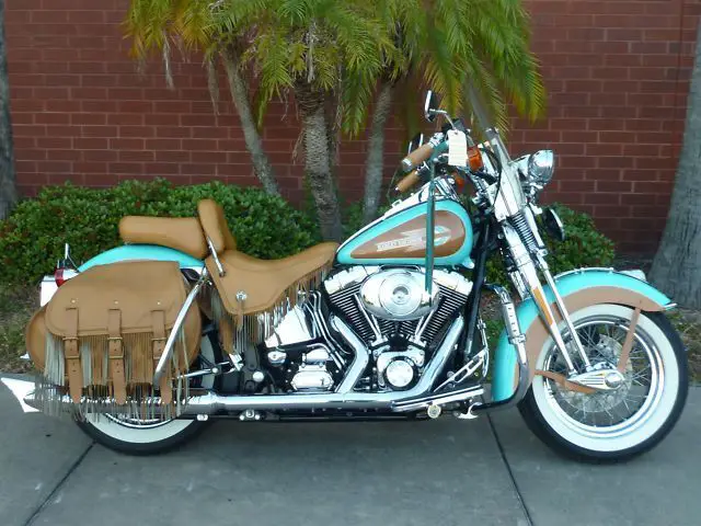 For your consideration is a one of a kind 2000 Harley Davidson Heritage Springer in great condition. Low miles. Nostalgic color scheme of turquoise. tan. and gold gives a classic southwestern look that is guaranteed to attract attention. Bike rides as great as it looks. Good rubber; Amsoil change at 15860 miles. Plenty of chrome and leather that is in great shape. This bike has been well kept and deserves to be ridden much more than I can devote to it. One of the nicest Springers that you'll ever see!Clear title in hand. A $500 nonrefundable deposit via Paypal is due within 24 hours of the end of the auction. The remaining balance is due 7 days after the end of the auction via cash or bank wire transfer. Buyer is responsible for pick up or shipping arrangements. I reserve the right to end the auction at any time as vehicle is listed locally. Thanks for viewing!