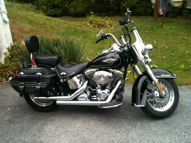 2011 Harley-Davidson Heritage Softail Classic The 2011 Harley-Davidson Heritage Softail Classic motorcycle FLSTC is fully equipped with modern touring capabilities and even has a removable motorcycle windshield. Enjoy mile after mile with a large capacity 5 gallon Softail fuel tank. The Softail tank is also dripping with authentic Harley-Davidson style. The Harley FLSTC has full length rider footboards with rubber vibration isolation for added comfort. Another of the many great features of this classic motorcycle is the detachable motorcycle windshield. Thats the salesmen pitch that i see on every website. This Harley is in great shape with just over 3800 miles. It has Vance and Hines Straight Shot exhaust. It is Vivid Black. Selling well below Blue Book price. If you have any questions please email me . Thanks