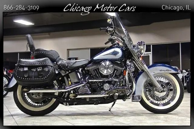 1996 Harley-Davidson Heritage Softail 1996 HARLEY-DAVIDSON FLSTC HERITAGE SOFTAIL CLASSICSinister Blue and Ice PaintHighlightsENGINE SIZE: 80 CUBIC INCH 1300cc FACTORY HARSEPOWER RATING: 58HP FORWARD CONTROLS CHROME OIL TANK HIGHWAY BARS CHROME PRIMARY COVER CHROME HORN COVER CHROME HARLEY-DAVIDSON MIRRORS SISSY BARS CHROME HARLEY-DAVIDSON AIR CLEANER SCREAMIN` EAGLE EXHAUST History ONLY 2. 00 ADULT DRIVEN MILES! ORIGINAL MSRP OF THIS 1996 HARLEY-DAVIDSON FLSTC HERITAGE SOFTAIL CLASSIC WAS $15. 00 FOLLOW US ONLINE! Follow us on Facebook Follow us on YouTube Follow us on Instagram Follow us on Twitter **********************************************************We Can Assist You In Shipping Your Vehicle Around The Globe!!CALL US TOLL FREE AT1-866-284-3109**FOR INTERNATIONAL CALLS USE**1-630-221-1800**FREE AIRPORT PICKUPS****2004-2014 EBAY MOTORS TOP SELLER AWARD**100% CHICAGOMOTORCARS. COM QUALITY GUARANTEE!!100% CUSTOMER SATISFACTION!!100% NO EXCUSES!!100% NO STORIES!!100% HASSLE FREE!!JUST ONE LOW PRICE FOR AN OUTSTANDING CAR!! Here at Chicago Motor Cars. we make every effort to ensure that our vehicle will exceed the expectation of the most demanding buyers. Each vehicle is hand-selected by our expert purchasing staff. then handed over to our reconditioning team to bring the car as close to new as is humanly possible. Our goal is to offer the most exceptional pre-owned vehicles in the marketplace at unbeatable prices!Please remember. every one of our cars has been enjoyed by their original owners. and these are not factory-new cars. This means they have actually been driven. and regardless of the level of care. every car will exhibit some wear-and-tear. Our vehicles are advertised with the current mileage at the time of listing. so mileage at the time of sale may vary due to test drives. transportation for reconditioning. etc. We go above and beyond to be as accurate as possible in our listings and descriptions. but remember. we are still human just like you. Cars leave the factory with unattached accessories (i. e. floor mats. extra keys. owners manuals. headsets. remotes. etc). and while it would be ideal to have all original accessories included with every car. this is not always the case. We will note in our listings any accessories that will be included. and provide a picture within the listing of all accessories. We do all within our power to avoid mistakes or misprints. so if you see any inaccuracy within our listing. we only ask that you bring this to our attention so that we can immediately rectify the information. We cannot be held responsible for any purely accidental inaccuracies. Since our ultimate goal is 100% customer satisfaction. we ask every customer to verify the listed equipment at the time of purchase with their salesperson. Please do not make any assumptions regarding condition or equipment. If you have any questions or concerns. call us at (630) 221-1800 and ask to speak with a sales manager to discuss. We also ask that that you not misinterpret anything in this disclaimer. as it is intended to be understood exactly as it is written. We are here to provide only the very best in quality and customer service!