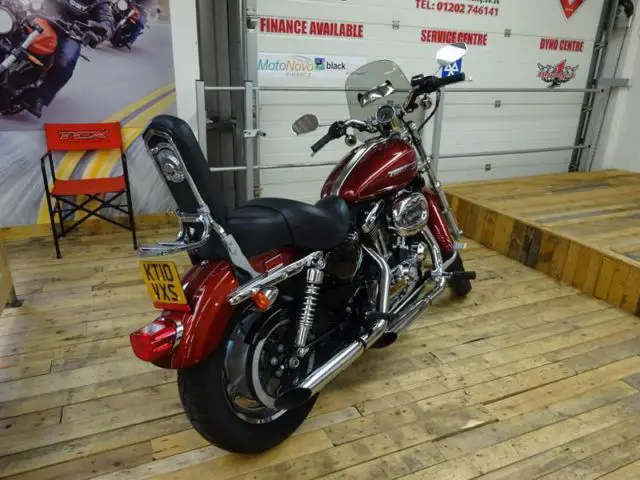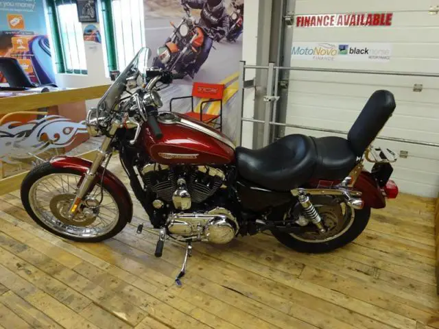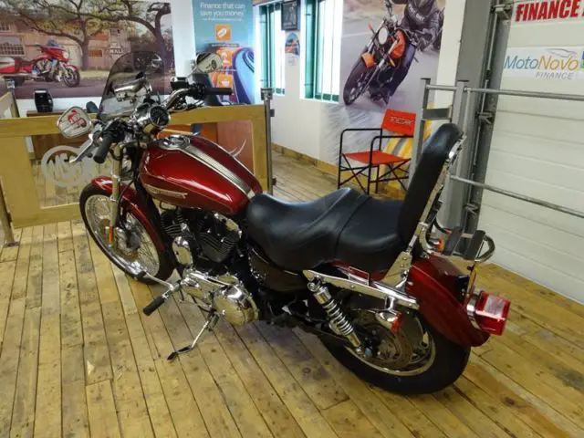 For sale we have a 2010 Harley Davidson XL1200 C Custom Sport in Red. This motorcycle is in excellent condition as can only be expected from its mileage. Harleys are all about the looks and sound. the previous owners have lived by this rule and because of this have been kept in great condition! It has covered 4. 50 miles since registration in 2003 and has had 2 owners from new. The mid-sized Harley-Davidson XL1200 Sportster makes a lot of sense. It?s got a bit more presence. punch and space than the smaller 883cc family but without the weight and unwieldy feel of the 1340/1450cc big end motorcycles. It?s classic. air cooled Harley ? if you want one you?ll probably not consider anything else. Full name is the Harley-Davidson XL1200 Sportster CustomFeatures:? MOT until 17/09/2015? HPI Clear? Khrome werks exhaust slip ons (standard exhausts supplied)? Pillion backrest? Riderscan ? Aftermarket rider and pillion seat? 2 keys with alarm fobs? Extender fenderAll our bikes have a 31 point mechanical & safety check completed prior to sale and include a 3 month warranty* Part exchanges welcome. Finance is available upon request and we offer National UK delivery for only ?99 + VAT*Contact us direct for full terms and conditions ?99 UK Delivery