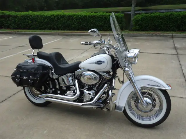 2015-03-11 208 Thanks for checking out this incredible Harley Heritage Classic. The Heritage has been one of Harleys best sellers since it's introduction in 1987. This is a very special bike that is in like new condition and loaded with accessories. Look at all the picks and you will find over 6K in extras. Not only is this incredible machine dripping in chrome but the prior owner installed a Saddleman gel seat for comfort. a stage 1 kit. and a throatty set of Samson pipes. The cosmetics of the bike are excellent and the Pearl White paint looks like new and is free of any dings. dents. or scratches. The Heritage runs and drives as good as it looks and just needs a new owner to enjoy the ride. The balanced twin cam 88" motor has plenty of power and the tranny is silkey smooth. The bike is ready to ride anywhere. Local buyers just add tax and tag and you can ride out. No additional doc or dealer fees. Financing available for qualified "Florida" buyers and local trades will be considered. If you are out of the area I can assist with quality shipping to most US locations. I can provide shipping contacts for overseas buyers but no price quotes. We have been selling quality vehicles for 25 years and have a 100% ebay rating so you can buy with confidence. Please review our customer feedback and see what our clients have to say. It is rare to find a bike in this condition that is loaded with extras so it will move quickley. This awesome machine is not to be missed so if you have questions or would like to own the bike call Steve Shay at (386)689-8900. Thanks and ride safe!