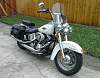 2012 Harley Softail Heritage Classic. Bike is in excellent condition and needs nothing except maybe a new battery. I purchased the bike last year from the original owner and it was my first Harley. I have previously owned sport bikes and I thought that maybe the wife and I could use the bike for the occasional get away but we just haven't ridden that much. The bike is very nice and the leather is in good shape. I have kept it treated with mink oil. I made custom passenger foot peg brackets out of stainless steal and they work very well. The bike looks sharp without the windscreen and passenger seat or you can throw them both on for casual cruising with your partner. The windscreen makes the bike much more comfortable above 55 MPH. Since I have owned the bike it has stayed inside and I have run nothing but Ethenol free gasoline in it. I believe that the previous owner did let the bike sit outside sometimes as there is very minor surface rust on a few small parts but you have to look to find them. I replaced one and possibly both tires about 500 miles ago (I can't remember). Overall the bike is in excellent condition and it runs and rides like new and I have no complaints. we just haven't been using it and it takes up space in my garage. We have a clean FL title for the bike. I have the bike listed locally so if it sells before anyone bids then I will end the auction early.