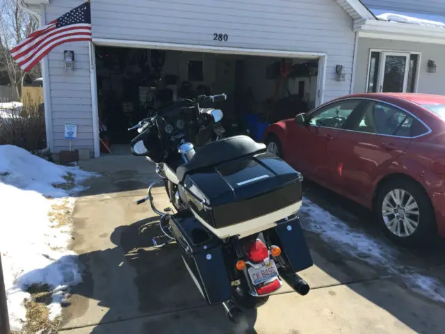2009 FLH Police addition Black & White 103" Police Motor with Heavy Duty Oil System. nbsp;Transmission. & Suspension. Spoke Wheels with New TiresNew Stereo/CD/MP3 with drawer for IPhone or IPod connectionCruise Control. nbsp;Detachable Tour Box with rear speakers Painted to match. nbsp;16" Apes. Rider and Passenger Banana foot Boards. Rhinehart Mufflers. Leather gripsSide Bag Puck Latch replaced with Flush Knobs$1000 Due at close of Auction with Total due with pickup of Bike. within 7 Days. Cash or Wire Transfer before release of VehicleTitle with Harley Davidson Credit to be released after PayoffLocal Pick up only. Shipment handled by purchaserAny questions please call 630-800-6552