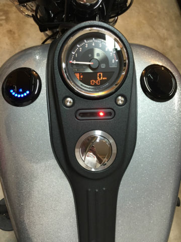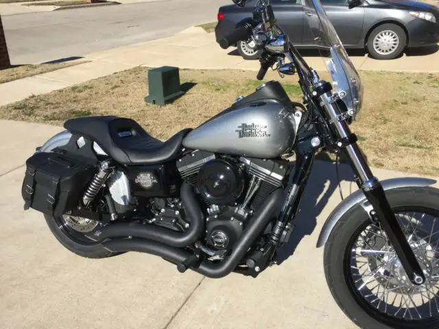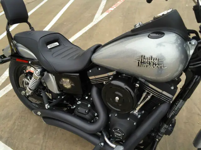 Brand new bike recently purchased with over $4000 in upgrades! Factory warranty until January 2017. Located in North Fort Worth. Texas. Brilliant custom silver hard candy paint. complete stage one upgrade with amazing Vance & Hines Big Radius pipes. S&S high-flow stealth breather and Vance & Hines FP3 tuner. Runs. looks and sounds amazing. Tuned to perfection. Harley-Davidson tachometer/digital speedo upgrade as well as black flush mount gas cap and LED fuel gauge. custom Low-Rider two-up seat! Factory SECURITY system with two key FOBs. Black bobber breather cover. derby cover and horn kit. Smoked turn signal lenses. Harley-Davidson detachable 18" sport windshield. backrest and pad forward highway pegs and throw-over saddlebags This bike is in the same condition as the day it was purchased. even better. Cost was almost $20k with options and upgrades. save thousands here. Factory warranty through January 2017. This bike has been babied. washed. waxed. loved. garaged and meticulously maintained. It has never been over 75 mph or 3500 rpm. I am an older guy. been riding for forty years and I know exactly how to care for a motorcycle. Clear blue Texas title is in my hand. Milage may increase a little as I will ride it a few miles per week. Buyer pays $500 deposit within 48 hours of purchase. Pickup only. no shipping. I cannot deliver. You will not find a nicer Dyna!I have the bike listed for sale locally as well and reserve the right to end this auction if it is sold outside of eBay.