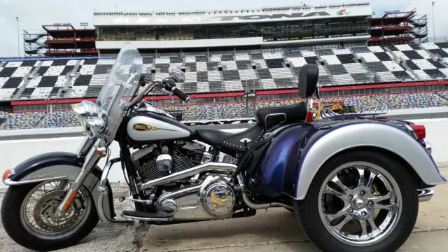 This 2009 Harley Davidson Softail Trike has a new Roadsmith independent suspension trike kit. Featuring: Triple tree steering kit - Electric reverse - Bassani dual exhaust. The bike has 33. 15 miles. It was converted by UNB Customs of Denver. North Carolina. You can see some of our work at unbcustom. com. Feel free to contact us at 704-489-0075 or unbcustoms@gmail. com with any questions! Thanks!