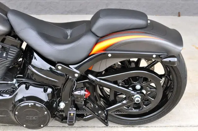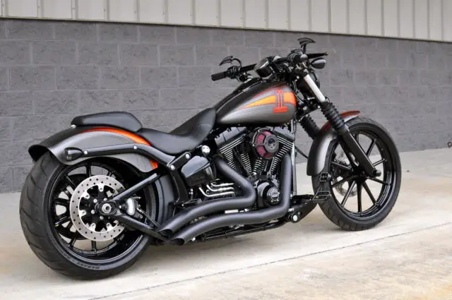 BX CUSTOM DESIGNS"Hand Crafted Freedom Machines" 4923 WILKINSON BLVDGASTONIA. NC 28056704. 824. 8533BIKE DESCRIPTIONANOTHER AMAZING STUNNING BIKE OFFERED FOR SALE BY THE WORLD FAMOUS BIKE EXCHANGE! THIS BAD ASS NEVER DROPPED COMPLETELY BLACKED OUT 2014 1 OF A KIND HARLEY DAVIDSON FUEL INJECTED FXSB BREAKOUT CUSTOM WITH ONLY 2360 MILES WITH OVER $13. 00. 00 IN CUSTOM ACCESSORIES WE JUST FINISHED! THE PAINT JOB WE DECIDED TO USE ON THIS BIKE TURNED OUT ABSOLUTELY STUNNING WITH ALL THE BLACKED OUT ACCESSORIES WE WENT WITH. MUST SEE IN PERSON!! ITS THE CREAM OF THE CROP WHEN IT COMES TO A SOFTAIL. THIS IS A CVO KILLER. THERE IS NOT A SCREAMIN EAGLE BREAKOUT ON THE ROAD THAT CAN COMPARE TO THIS BIKE OR THAT HAS THIS KIND OF LOOK. IT IS SURE TO TURN SOME HEADS EVERYWHERE YOU RIDE! WE SPECIALIZE IN PROVIDING OUR CUSTOMERS WITH ONE OF A KIND CUSTOM HARLEYS ALONG WITH THE SERVICE AND RESPECT THAT THEY DESERVE! THE LIST OF EXTRAS ON THIS BIKE IS STAGGERING! THOUSANDS AND THOUSANDS HAVE BEEN DROPPED ON THIS BIKE TO BRING ITS CURRENT LEVEL. BELOW IS A LIST OF THE EXTRAS INSTALLED:CUSTOM SATIN BLACK & SILVER LEAF WITH ORANGE CANDY $5000. 00 PAINT JOBCUSTOM BLACKED OUT FRONT WHEELCUSTOM BLACK FRONT ROTORCUSTOM BLACKED OUT FRONT END KITCUSTOM BLACK OPS PM HEADLIGHTCUSTOM BLACKED OUT REAR WHEELCUSTOM BLACK PULLYBLACK AXLE NUT COVERSCOMPLETE BLACKED OUT ENGINE KITBLACKED OUT PRIMARY COVEROVER $3500. 00 IN POWDERCOAT ALONEBLACK HOT TOPPER KITBLACKED OPS COBRA BIG RADIUS EXHAUST SYSTEMBLACKED OUT PM MAX HP BREATHERCUSTOM BLACK JOKER RIDER PEGSBLACK JOKER BRAKE PEDALBLACK JOKER SHIFTER PEGSBLACK JOKER PASSENGER PEGSCUSTOM BLACK FORK GATORSBLACKED OUT DRAG STYLE HANDLEBARSBLACK LEVERSCUSTOM BLACK OPS ARLEN NESS GRIPSCUSTOM BLACK OPS ARLEN NESS MIRRORSREAR LOWERING KITCUSTOM BLACK PM GAS CAPBLACK B/X CUSTOM LINKAGEXTRA'S GALORE ***THIS BIKE HAS OVER $13. 00 IN CUSTOM EXTRA'S***CONDITION & SPECSAS YOU CAN SEE FROM THE PHOTOS. THIS BIKE IS VERY NICE! IT IS IN GREAT CONDITION & RUNS AND RIDES PERFECTLY. YEAR - 2014MAKE - H. DMODEL - FXSB BREAKOUT CUSTOMMILES - 2360DISPLACEMENT - 103 CUBIC INCHESTRANSMISSION - 6 SPEEDVIN - AVAILABLE UPON REQUESTWARRANTY - FULL H. D. WARRANTY GOOD UNTIL 4/1/2016ADDITIONAL INFORMATIONFINANCING IS AVAILABLE! - CALL US AT THE SHOP TO APPLY 704-824-8533WE PAY TOP DOLLAR FOR TRADES - CALL US OR EMAIL US TO DISCUSS YOUR TRADE-INALL PURCHASES ARE SUBJECT TO A $199 DOCUMENTATION FEEPAYMENT OPTIONSCASH IN HANDAPPROVED FINANCINGBANK CASHIER'S CHECKBANK TO BANK WIRE TRANSFERSHIPPING QUOTESFEDERAL TRANSPORT AT 1-800-747-4100D&K TRANSPORTATION AT 1-973-534-7823 CANADA QUOTES TO YOUR DOOR CALL 1-800-466-6935INTERNATIONAL QUOTES CALL SCHUMACHER CARGO AT 1-562-408-6677
