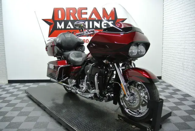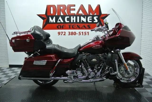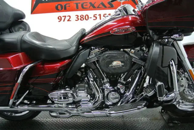 2011 Harley-Davidson FLTRUSE - Screamin' Eagle Road Glide Ul (972) 441-7080 ext. 749 Odometer: 30948 Body Style: Touring Exterior Color: Red Interior Color: Rio Red and Black Ember with Quartzite Graphics Stock #: 956771 Vin:1HD1TA811BB956771 Dream Machines of Texas Address: 13600 N Stemmons FwyFarmers Branch. TX 75234 Contact: Sales Phone: (972) 441-7080 ext. 749 Fax: 972-380-5153 Email: sales@dreammachinesoftexas. com CONTACT DEALERSHIP APPLY FOR FINANCING VIEW DEALERSHIP SHOWROOM Vehicle Overview *BOOK VALUE $27. 75* FINANCING AND EXTENDED WARRANTY AVAILABLE. ? YOU ARE LOOKING AT A 2011 HARLEY DAVIDSON CVO SCREAMIN' EAGLE ROAD GLIDE ULTRA (FLTRUSE) WITH 30. 48 MILES ON IT. IT IS RIO RED AND BLACK EMBER WITH QUARTZITE GRAPHICS IN COLOR AND POWERED BY A 1803CC (110") FUEL INJECTED ENGINE AND 6 SPEED TRANSMISSION. THE BIKE COMES WITH ABS BRAKES. CRUISE CONTROL. HEATED GRIPS. HEATED SEATS. 1 KEY. 1 REMOTE. AND FACTORY SECURITY SYSTEM. THERE ARE A FEW EXTRAS ON THE BIKE WHICH INCLUDE VANCE & HINES POWER DUAL HEADERS AND RINEHART SLIP-ON MUFFLERS. THERE ARE NO DENTS OR DINGS THAT IN CAN FIND. THERE IS A LITTLE FLAKING ON THE FORK LOWERS. SOME MINOR TOUCHUPS ON THE FRONT FENDER. AND LIGHT SCUFFS ON THE SADDLEBAGS AND FRONT FAIRING. THE CHROME AND ALUMINUM ARE IN GOOD CONDITION WITH THE EXCEPTION OF A LITTLE FLAKING ON THE TIMER COVER AND SADDLEBAG BAG LATCHES. THE TIRES HAVE GOOD TREAD LEFT ON THEM. IF YOU ARE LOOKING FOR A CVO ROAD GLIDE WAY UNDER BOOK VALUE. PLEASE CONSIDER THIS ONE. Dealership Features Warranty Terms of Sale Disclaimer Vehicle Features Warranty Unless otherwise noted. this vehicle is being offered as-is with no warranty expressed or implied. Please call for specific warranty details on this vehicle. Video Terms of Sale This vehicle is also for sale on our lot and other advertising sources. we reserve the right to end this listing at anytime should the vehicle no longer be available for sale. The following terms of sale apply to all of our auctions. Payment Terms: The successful high bidder will required to submit a $500 non-refundable deposit within 48 hours of the close of the auction to secure the vehicle. Understanding that the vehicle will remain available for purchase until the deposit has been secured. Buyer agrees to pay remaining balance due (plus applicable fees and taxes) within 5 business days of the close of the auction. All financial transactions must be completed before delivery of the vehicle. Payment Methods: Cash (in person). certified check. bank transfers. or 3rd-party financing. Fees and Taxes: Out of state buyers are responsible for all state. county. city taxes and fees. as well as title/registration fees in the state that the vehicle will be registered. Disclaimer It is the customer's sole responsibility to verify the existence and condition of any equipment listed. We try our best to thoroughly describe the vehicle and its features. please contact us prior to bidding on the vehicle if you have any questions about the vehicle. We are NOT responsible for misprints on prices or equipment. It is the customer's sole responsibility to verify the accuracy of the prices and equipment with the dealer. Pricing is subject to change without notice.
