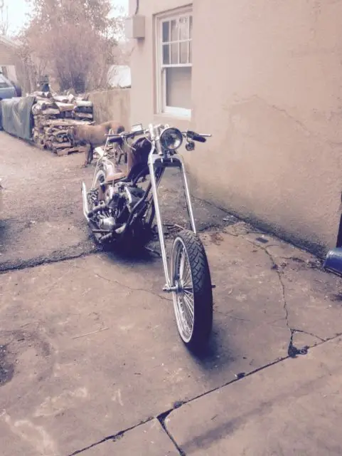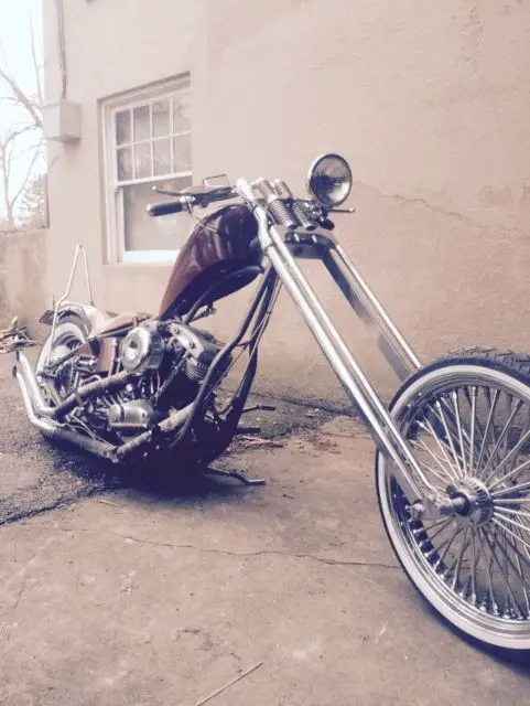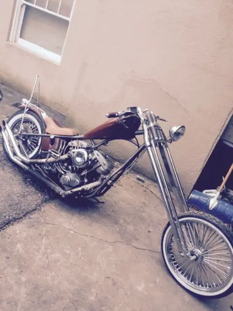 Not for faint of heart. bike is 9 feet long and can raise front end in second gear. originally modeled after billy lane buffalo chip bike. Many subtle rat rod style effects on this machine. just my kinda style. high life bottle opener. skeleton keys. horseshoe with ice cleats. etc. have every receipt on bike. I'm sure there is a ton of things I'm forgetting but you get the gist. 88" stroker shovelhead s&s motor. Andrews B grind cam. kick and electric start. 4 speed ultima. open primary. extra super b carb with velocity stacks to go along with purchased from indian Larry in Daytona 2000. 21" front wheel with 52 mammoth spoke radially laced wheel with matching rear. Old Quaker State can covers solenoid. vintage jammer frame. Paughco springer front end. Horse shoe in wishbone of frame. White walls. Brass pegs etc by Chica. Upswept drag pipes. West Coast Choppers gas tank with six shooter cap and matching risers. Billy Lane whiskey bars. Shoot me an email for a video if you'd like to see it run. I strongly urge any serious bidder to come and take a look at this bike in person. I'd rather there be no surprises for anyone. I'll also allow your mechanic to come over and check it out. but I won't be taking it to them. Sorry. I won't ship. but I'll work with you and your shipper to get it to you. Title and bike will remain in my possession until payment is made in full. No warranty. Bid and buy at your own risk.