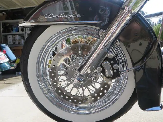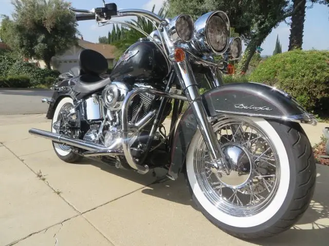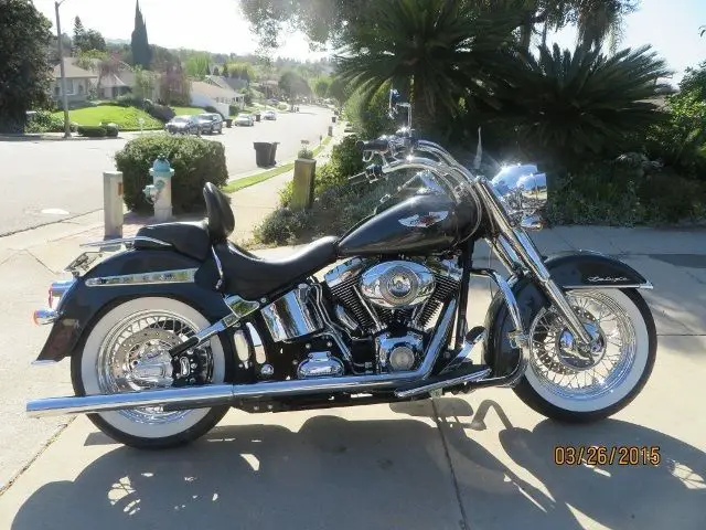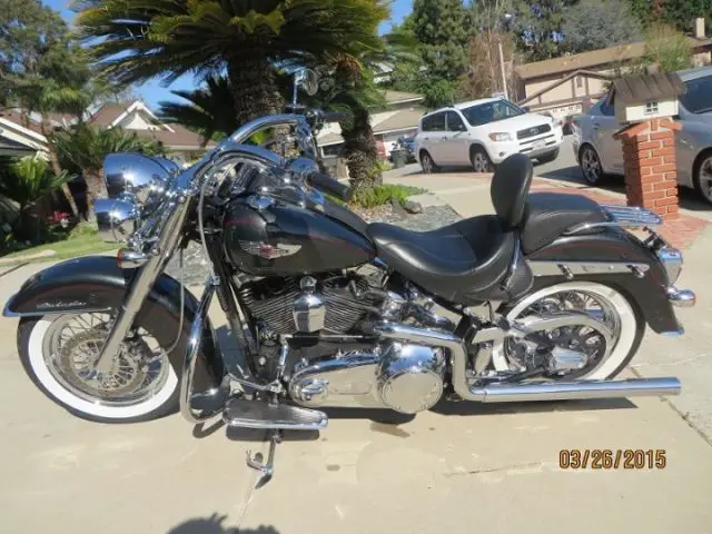 I'm selling my 2007 Deluxe FLSTN. It's in Excellent condition. No deferred maintenance. All service has been performed on schedule. It has the 6 Speed Transmission. Adjustable Rear Suspension. The Color is Black Pearl Metallic with Bright Metallic Flakes that Really POP when in the sun. It looks Great against the Whitewall Tires and all the Chrome. The bike is ready to ride NOW. It does not need a thing. I put a new front tire on it 2 weeks ago and went on a 800 mile trip last weekend. The bike Runs and Rides fantastic. All miles have been ridden by a Mature and experienced rider. Always garaged. Never been in an accident of any kind. This is a Really Clean. Really Nice Bike. No Dents or Scratches. This Bike Looks Almost Like a new Bike. I have done a lot of upgrades and I will try to list most of them. Performance Upgrades. Mackie 510 Cams to give it more power and torque. { Pulls Very Strong in every Gear }. Stage 1 Intake. Freedom Performance True Dual Exhaust. Power Commander. Dyno Tuned at Laidlaws Harley Davidson. Safety Upgrades. Kuryakyn LED Headlight and Spotlights. [ Turns Night Into Day ] You can run Both High Beam and Spotlights at the same time for The Highest Visibility in Daytime Riding as Well as Maximum Vision on Dark Sections of Roads at Night. . LED Tail Light. Chrome Engine Guard. Converted Rear Turn Signals Into Running / Brake / Turn Signal LED Lights for Much Improved Night Visibility. Comfort Upgrades. Corbin Custom Seat with Back Rest. This Deluxe Now has a Lower than 24" Seat height. 1 1/2" Carlini PullBack Handlebars. Cosmetic Upgrades. Chrome front Forks and Bells. Chrome Front And Rear Axle Covers. Chrome Headlight Bezels. Chrome Switch Covers. Chrome Rear Foot Pegs. Swing Arm Inserts. Chrome Swing Arm Covers. Lay Down License Plate. Chrome Front & Rear Brake Bolt Covers. Braided Cables. Custom Chrome Brake Rotors. And More. This Bike is Eligible to be Financed Through the Local Harley Davidson Dealer. As you can see. Well Over $7. 00. in Upgrades make this a Really Nice Ride. If You Factor in The Cost of the Upgrades. You're Getting this Bike for $5. 00. Whatever Deluxe you purchase. makes sure that is a 2007 or newer to get the 6 Speed transmission. It makes all the Difference on Long Rides. It's Easier on the Engine. Reduces RPM's and makes the ride way more Comfortable. If you are Looking for A Harley Davidson Deluxe. this IS The One !!!I have a Clean Title in hand. Thanks For Looking. I Will Delete This Ad When It Is Sold.